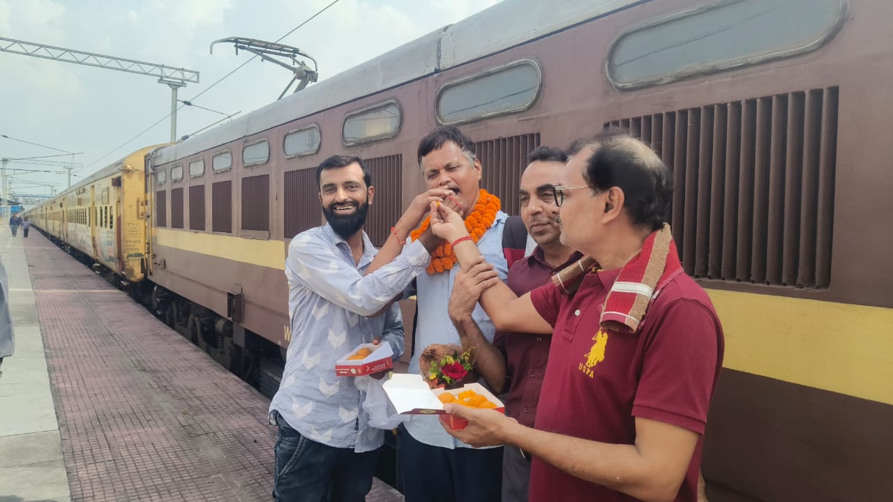 : कोरबा इतवारी कोरबा एक्स्प्रेस ट्रेन का नागरिक जन सेवा समिति, कोरबा ने किया स्वागत