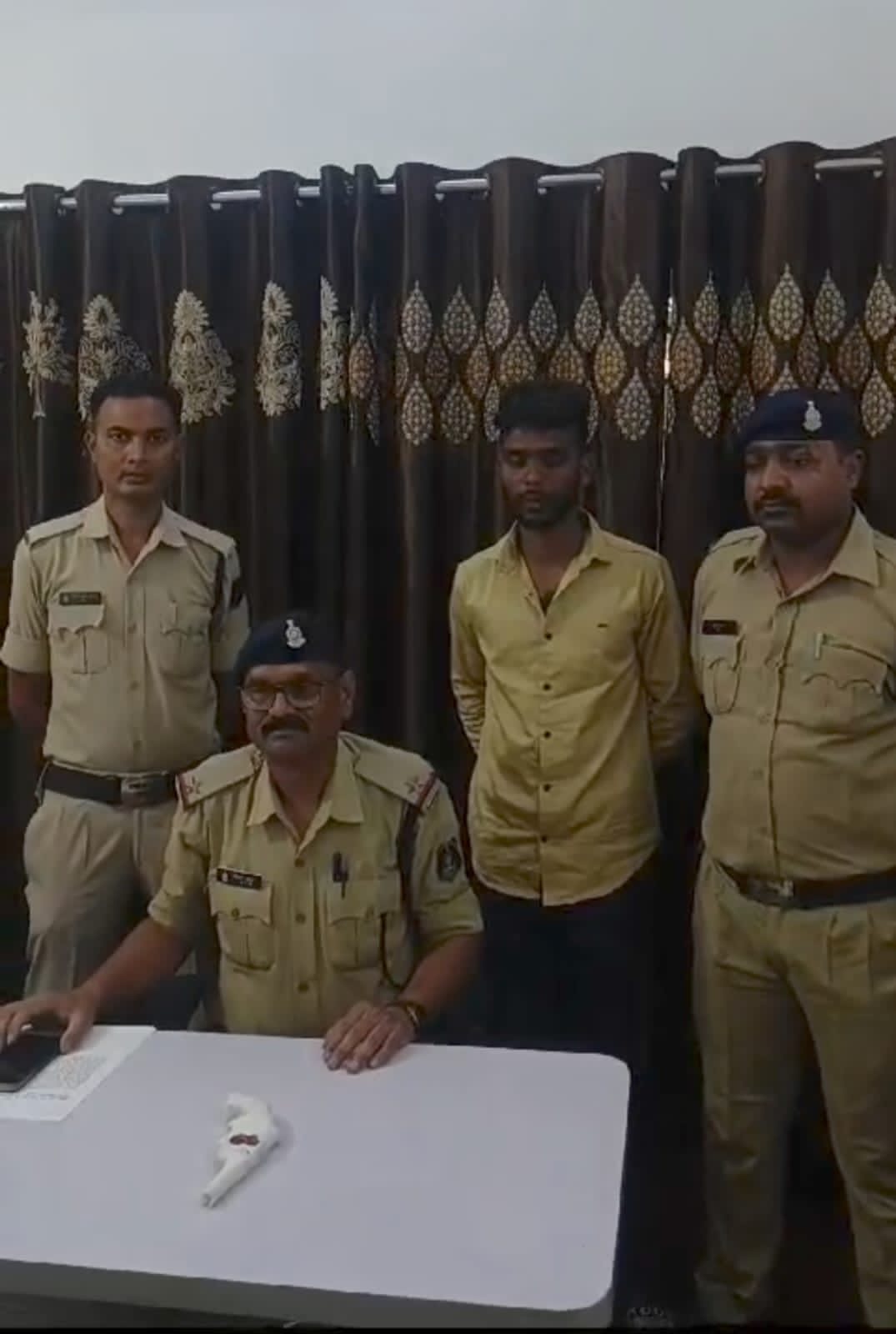 सूचना पर हमराह स्टाफ तथा साइबर टीम के द्वारा तत्काल टीम बनाकर आरोपी को देशी शराब भट्टी रताखार चौक के पास घेराबंदी कर पकड़ा गया जिसके कब्जे से 01 नग देशी कट्टा मिला।