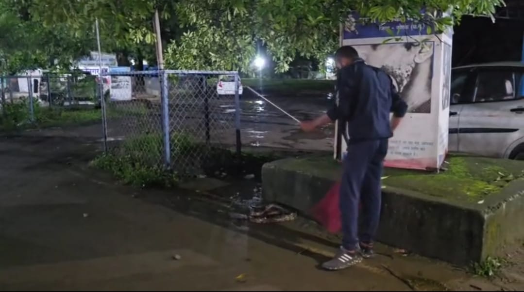 कोरबा( न्यूज उड़ान )बालको थाना परिसर में बीती रात लगभग 11:30 बजे एक विशाल अजगर दिखाई देने से हड़कंप मच गया। मौके पर मौजूद पुलिस स्टाफ ने तुरंत सूचना Reptile Care and Rescuer Society (RCRS) को दी।
