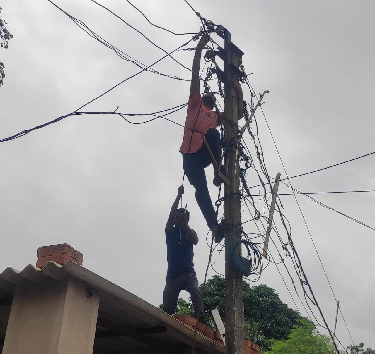 बिजली के खंभे और तार इतने जर्जर हो चुके हैं कि किसी भी वक्त बड़ा हादसा हो सकता है।