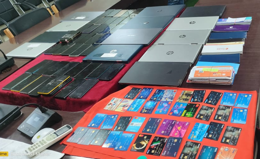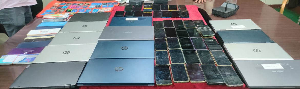 *🔴सटोरियों के कब्जे से लैपटॉप 13 नग, स्मार्ट मोबाईल फोन 48 नग, 26 पास बुक, 14 चेक बुक तथा 40 ए.टी.एम. किया गया है जप्त।*