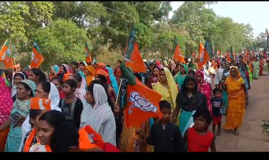 : महतारी वंदन योजना को लेकर महतारियों ने निकाली चुनाव प्रचार के अंतिम दिवस पर सरोज पांडेय के समर्थन में रैली