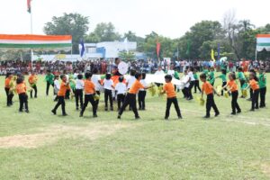 समारोह के दौरान सांस्कृतिक कार्यक्रम के अंतर्गत केन्द्रीय विद्यालय, डीपीएस, बाल भवन, टैइनी कौतेज और शिशु मंदिर के के छात्र-छात्राओं द्वारा देशभक्ति से प्रेरित सामूहिक नृत्य एवं गीत प्रस्तुत किए गए।