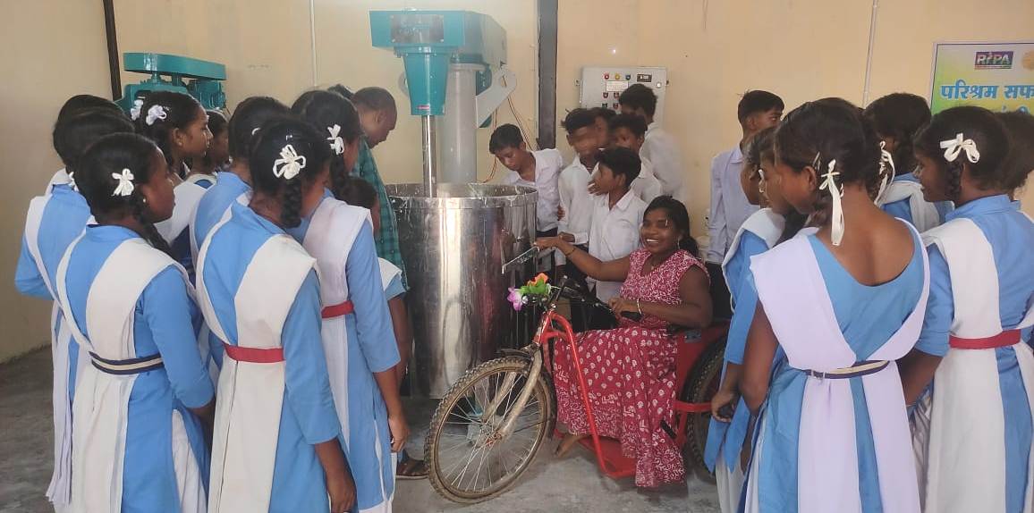 साथ ही गांव में इस प्रकार के कार्य को देखकर बच्चों में उत्साह बढ़ा तथा भविष्य में उद्यमी बनने हेतु आवश्यक चीजों के आंकलन करने में बच्चों के जिज्ञासा भी देखने को मिली। रीपा में हल्दी, मिर्च, मसाला, धान प्रसंस्करण इकाई, चप्पल निर्माण, दोना पत्तल, इकाईयों के संचालन को बच्चों ने देखा व गोबर पेंट इकाई व फ्लाई एश ब्रिक्स इकाई को देखकर खुश हुए। रीपा मैनेजर सुश्री ललिता राठिया ने स्कूली बच्चों को रीपा में संचालित आर्थिक गतिविधियों की जानकारी दी।
