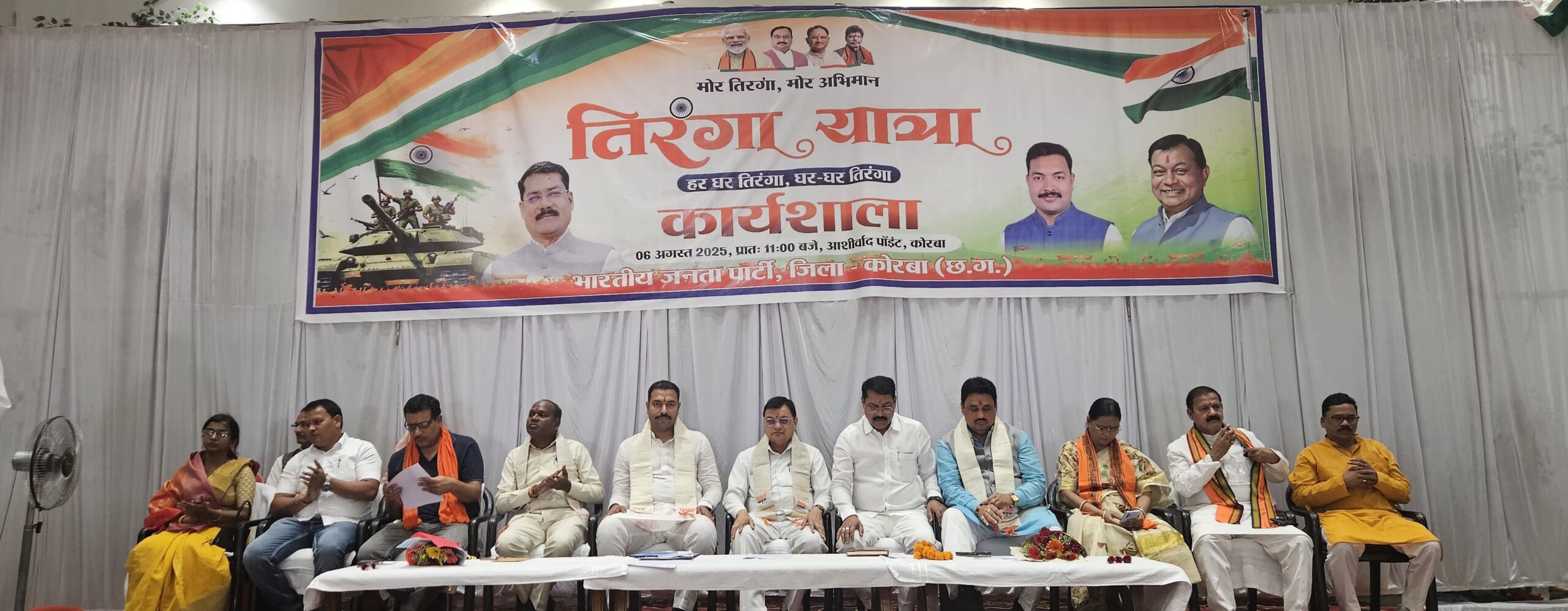 प्रदेश संगठन के निर्देशानुसार भारतीय जनता पार्टी द्वारा “मोर तिरंगा – मोर अभिमान” 🇮🇳 अभियान के अंतर्गत कोरबा जिले के ट्रांसपोर्ट नगर स्थित आशीर्वाद प्वाइंट में जिला स्तरीय कार्यशाला का आयोजन किया गया।