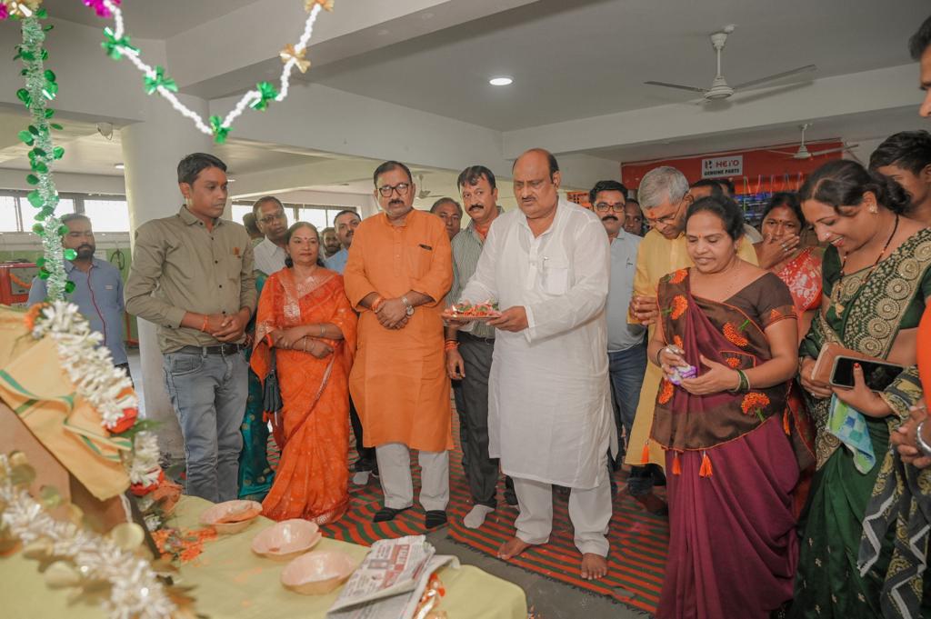 कोरबा। छत्तीसगढ़ प्रदेश के राजस्व मंत्री जयसिंह अग्रवाल द्वारा अपने विधानसभा क्षेत्र में हर त्योहार को आम जनता के साथ मिलकर बड़े ही हर्षोल्लास से मनाते हैं।इसी कड़ी में आज उन्होंने जैलगांव चौक स्थित शांति हीरो में महान शिल्पकार भगवान श्री विश्वकर्मा जी की विधि विधान से पूजा अर्चना आरती कर प्रदेश की खुशहाली की कामना की।
