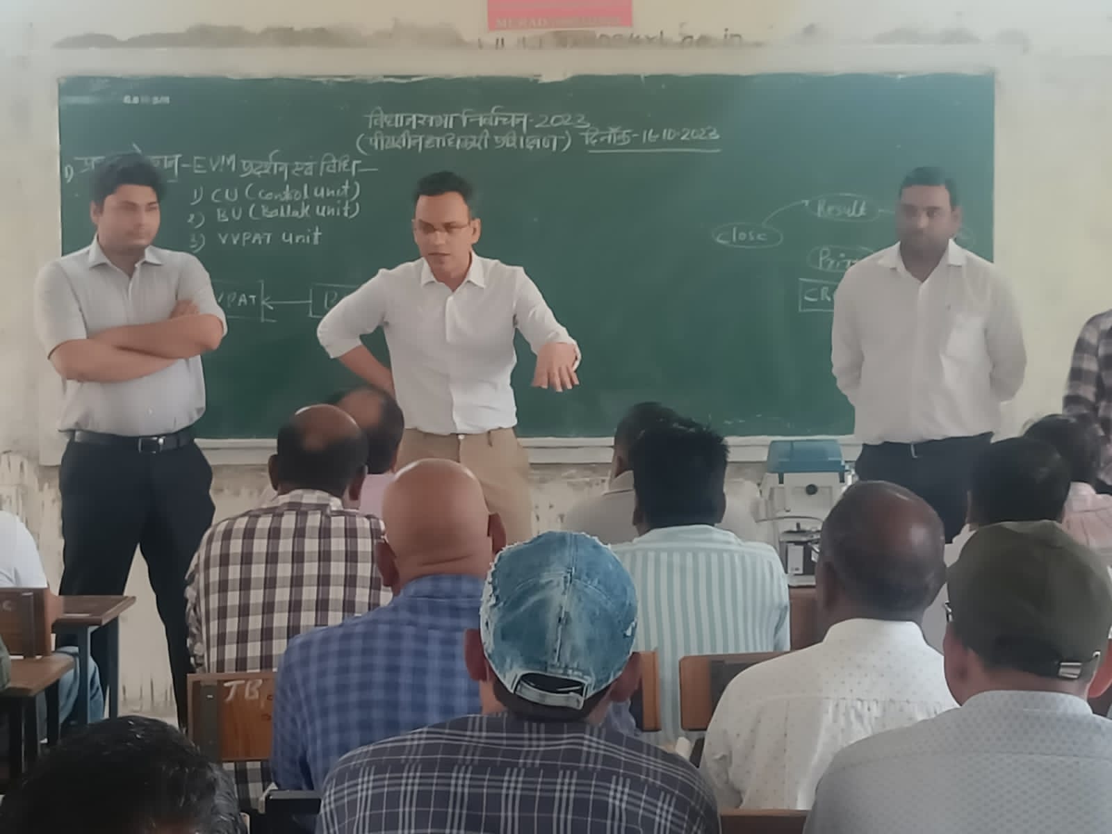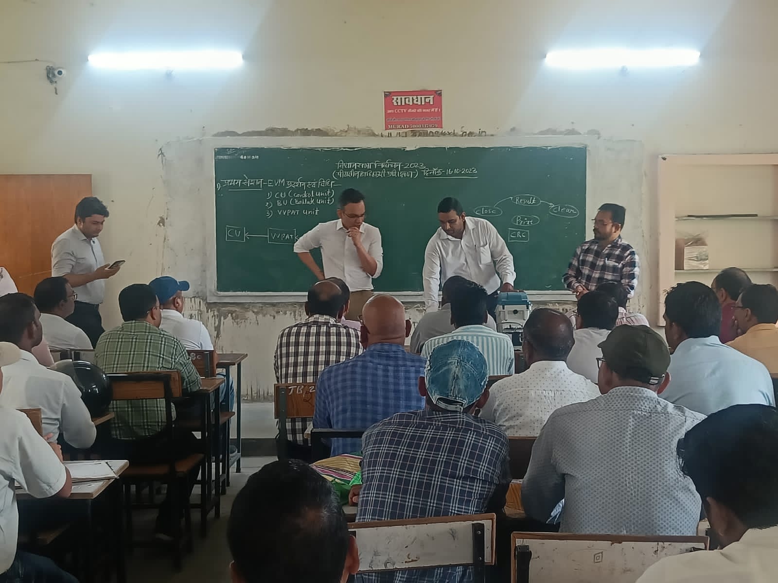 उन्होंने कहा कि प्रत्येक प्रशिक्षणार्थी ई.व्ही.एम.मशीन का संचालन स्वयं करके देखें। उन्होंने मतदान तिथि के पूर्व तथा मतदान के दिन समस्त आवश्यक व्यवस्थाएं अवश्य सुनिश्चित कर लेने के निर्देश दिए। उन्होंने ई.व्ही.एम. द्वारा मतदान की कार्यप्रणाली, मतदान दलों को ई.व्ही.एम. को मतदान के लिए तैयार करने, ई.व्ही.एम. में इरर का निराकरण, ई.व्ही.एम. के बैलेट यूनिट, कंट्रोल यूनिट की कार्यप्रणाली, मतदान के दौरान सावधानी, एवं आवश्यक कार्यवाही एवं प्रक्रिया, बैलेट यूनिट और कंटोल यूनिट की सिलिंग की प्रक्रिया तथा मतदान संपन्न होने के बाद सामग्री जमा करने की निर्धारित प्रक्रियाओं के संबंध में विस्तार से जानकारी मतदान दलों को प्रदान करने के लिए प्रशिक्षकों को निर्देशित किया।उन्होंने प्रत्येक कक्ष में जाकर पीठासीन अधिकारियों का चुनाव कार्य के प्रशिक्षण का सघन निरीक्षण किया और कहा कि चुनाव दल के किसी भी सदस्य को यदि चुनाव से संबंधित किसी भी कार्य में कोई असुविधा महसूस हो रही हो, दुविधा हो तो वे उसका समाधान मास्टर टेनर्स से अवश्य करें।