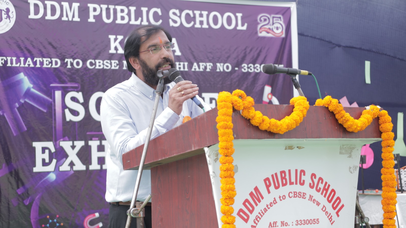 मुख्य अतिथी श्री के. एन. सिंह जी ने अपने संबोधन में बच्चों के शानदार प्रदर्शन की सराहना करते हुए अपने स्कूली समय को याद किया। बच्चों में वैज्ञानिक सोच विकसित करने के उद्देश्य से विज्ञान प्रदर्शनी का आयोजन किया गया है। उन्होने बताया कि विज्ञान की ऐसी प्रदर्शनी से बच्चों की प्रतिभा को प्रोत्साहन मिलता है। बच्चें अपनी बातों को कहना सिखें, परिश्रम करना, सहयोग की भावना, मित्रवत व्यवहार का पाठ शामिल है। इसके उपरान्त विद्यालय के प्राचार्य महोदय श्री ए. पी. सिंह जी ने अपने संबोधन में कहा कि इस विज्ञान प्रदर्शनी का आयोजन सी.बी.एस.ई. के बच्चों में वैज्ञानिक सोच विकसित करने के लिए "करके सिखो" नीति के आधार पर किया गया। बच्चों में वैज्ञानिक सोच विकसित करने और उनका विज्ञान के प्रति आकर्षण बढ़ाने के लिए यह जरूरी है कि उनको वैज्ञानिक गतिविधियों में शामिल हो ।