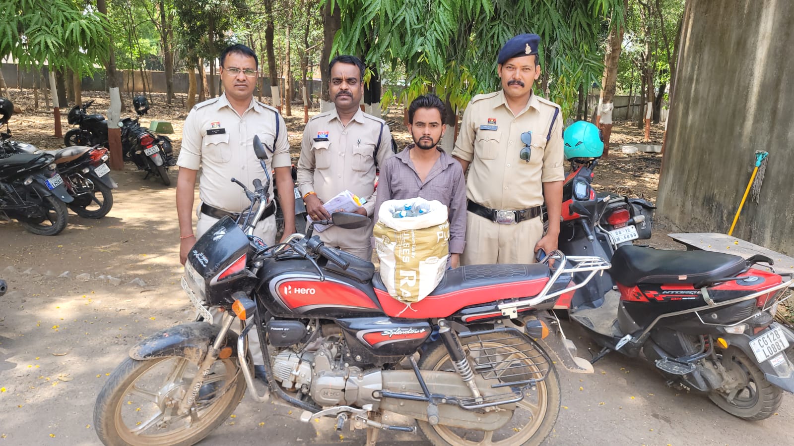 इस कार्रवाई में कुल लगभग 130 लीटर अवैध शराब तथा एक मोटरसाइकिल (CG11BK5332) जब्त की गई।