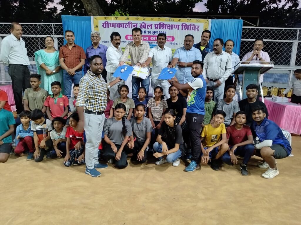 संचालनालय खेल एवम युवा कल्याण रायपुर के मार्गदर्शन तथा जिला प्रशासन कोरबा एवं खेल एवं युवा कल्याण विभाग कोरबा के तत्वाधान में 16 मई से 15 जून तक आयोजित 30 दिवसीय निशुल्क ग्रीष्मकालीन खेल प्रशिक्षण शिविर का समापन समारोह एसईसीएल वॉलीबॉल मैदान में संतोष राठौर पूर्व सभापति नगर पालिक निगम कोरबा, जिला ओलंपिक एसोसिएशन के अध्यक्ष नौशाद खान, सचिव डी सुरेश क्रिस्टोफर, कोषाध्यक्ष सुशील गर्ग, बैडमिंटन संघ के सचिव गोपाल शर्मा, प्रदेश किकबाक्सिंग संघ के कार्यकारी अध्यक्ष तारकेश मिश्रा,जिला क्रीड़ा अधिकारी के आर टंडन ,तैराकी संघ से अशोक सक्सेना एवं अंतर्राष्ट्रीय बैडमिंटन खिलाड़ी मधु पांडेय के आतिथ्य में सम्पन्न हुआ। जिला खेल अधिकारी दीनू पटेल ने बताया कि उक्त प्रशिक्षण शिविर में जिले में 21 खेल विधाओं के लगभग 1800 प्रशिक्षार्थी ने प्रशिक्षण लिया। इस अवसर पर विभिन्न खेलों में राष्ट्रीय स्तर पर पदक प्राप्त खिलाड़ियों को सम्मानित किया गया।