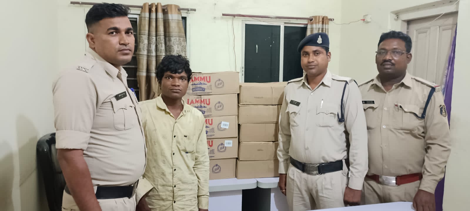 *कार्यवाही के दौरान रामसागरपारा कोरबा निवासी दुर्गेश कंवर पिता स्वर्गीय दीपक कंवर उम्र 23 साल साकिन रामसागर पारा कोरबा के द्वारा मुखबिर से सूचना मिला की अपने घर में शराब रखकर अवैध रूप से बिक्री कर रहा है की सूचना पर आरोपी के घर में रेड करने पर 5 नग खाकी कार्टून में जम्मू व्हिस्की अंग्रेजी शराब कुल 240नग तथा 05 नग खाकी कार्टून में देशी प्लेन शराब कुल 240नग, जुमला 86.400 लीटर कीमती 48,000 रु. जब्त कर आरोपी का कृत्य अपराध धारा सदर 34(2)59(क) आबकारी अधिनियम का पाए जाने से विधिअनुरूप आबकारी एक्ट के तहत कार्यवाही करते हुए गिरफ्तार कर न्यायालय पेश किया गया।*