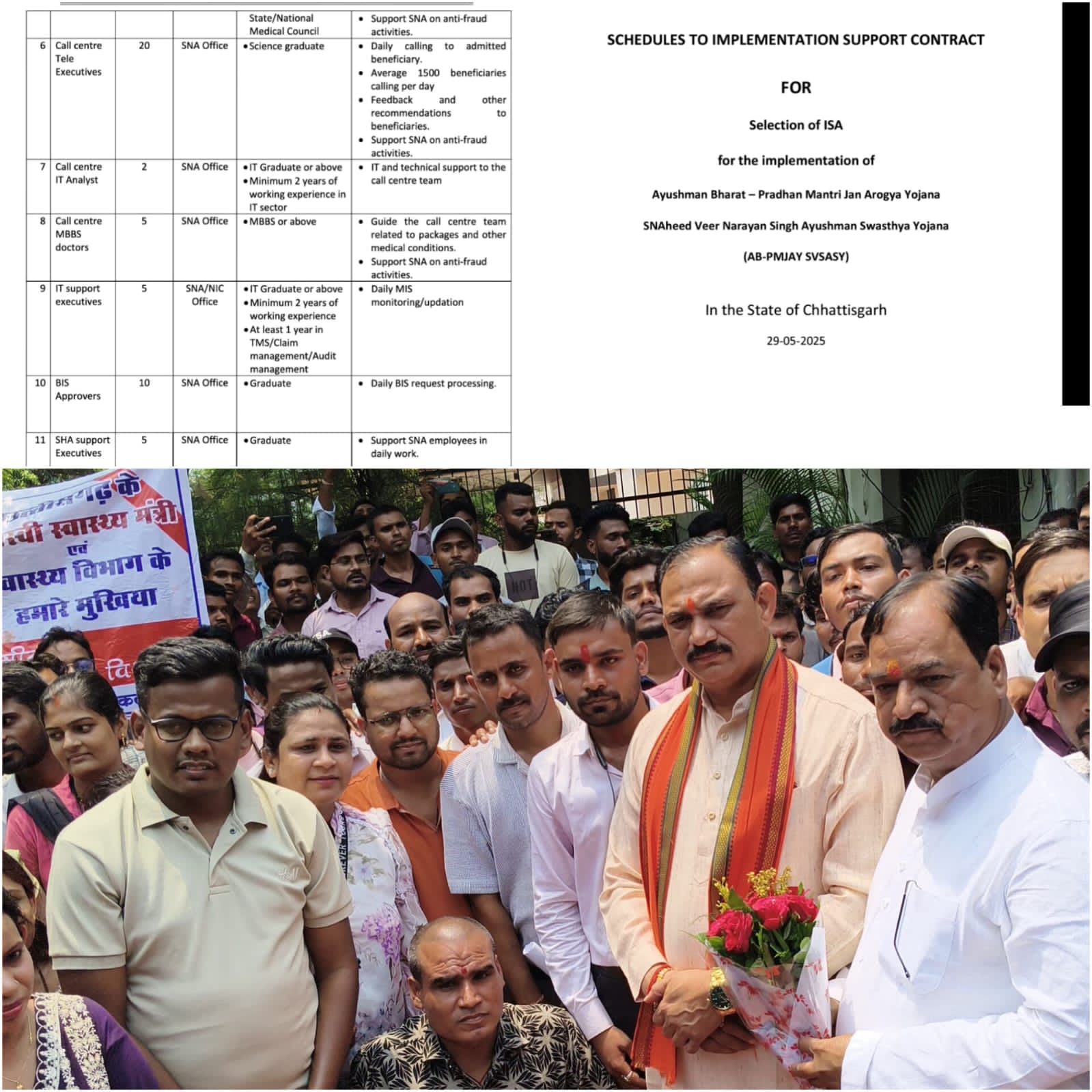 कल दिनांक 29.05.25 को छत्तीसगढ़ के समस्त जिलों में कार्यरत स्वास्थ्य मितान लगभग 500-600 कि संख्या में स्वास्थ्य मंत्री जी के बंगले पहुंचे थे बड़ी उम्मीद से अपनी जॉब को कंपनी या कलेक्टर दर में पुनः एक्सटेंड करने के लिए वर्तमान में स्वास्थ्य मितान पद को जिला अस्पताल, सामुदायिक स्वास्थ्य केंद्र, प्राथमिक स्वास्थ्य केंद्रों में लगभग पूरे राज्य में 750 कि संख्या में थर्ड पार्टी कंपनी के माध्यम से लगभग 12 से 15 वर्षों से TPA कंपनी के माध्यम से रखा जाता था वर्तमान में FHPL कंपनी को टेंडर मिला था जिसका टेंडर 30 अप्रैल को समाप्त हो चुका है साथ ही स्वास्थ्य मितान कर्मचारी कि 3 माह कि सेलरी FHPL कंपनी नहीं दी है साथ ही वर्तमान कंपनी का टेंडर खत्म होने के बाद जॉब भी जा चुका है स्वास्थ्य मितान सभी चिकित्सालयों में ऑपरेटर के पद पर कार्यरत थे ये लोगों का आयुष्मान कार्ड बनाते ओर क्लेम का कार्य करते थे साथ शिविरो के माध्यम से आयुष्मान योजना प्रचार ओर विस्तार करते थे अभी वर्तमान में छत्तीसगढ़ राज्य राष्टीय स्तर पर आयुष्मान कार्ड बनाने ओर क्लेम प्रोसेसिंग में टॉप 5 में जगह बना पाई इन स्वास्थ्य मितान कर्मचारियों के कारण इसी उम्मीद में स्वास्थ्य मंत्री जी से स्वास्थ्य मितान कर्मचारी संघ मिला और स्वास्थ्य मंत्री जी ने आश्वासन भी दिया की इनके 12 से 15 वर्षों के अनुभव का सरकार लाभ लेगी इनका पुनः भर्ती स्वास्थ्य विभाग के अंतर्गत कलेक्टर दर या TPA के माध्यम से किया जाएगा और साथ ही प्रेस कॉन्फ्रेंस में भी इनकी नौकरी के लिए चिंतित दिखे स्वास्थ्य मंत्री स्वास्थ्य मितान कर्मचारियों को मंत्री जी के द्वारा उनके रायपुर निवास में आश्वासन मिलने के बाद शाम में स्वास्थ्य विभाग स्टेट नोडल एजेंसी के द्वारा टेंडर निकाला गया जिसमें स्वास्थ्य मितान पद का जगह नहीं था मेन पावर वाले कॉलम में जिससे यह समझ आया कि स्वास्थ्य मंत्री जी के आश्वासन के बाद भी स्वास्थ्य विभाग के उच्च अधिकारी मंत्री जी के आश्वासन को झुंकलाते हुए टेंडर निकाल दिए जिससे स्वास्थ्य मितान कर्मचारी संघ ने रोष जाहिर किया है स्वास्थ्य मंत्री और स्वास्थ्य विभाग के उच्च अधिकारियों पर क्योंकि 750 स्वास्थ्य मितान कर्मचारियों के साथ उनके परिवार का जीवन यापन अब कैसे होगा यह चिंता उत्पन्न हो गई है कर्मचारियों पर इसमें से बड़ी संख्या में स्वास्थ्य मितान बस्तर सम्भाग और सरगुजा सम्भाग में आदिवासी युवक युवतियां जॉब में थी पर अधिकारियों के गलत निर्णय के कारण बेरोजगारी का शिकार ये भोले भाले सुदूर क्षेत्र ओर आदिवासी युवक युवतियां हो रही हैं।Tags :