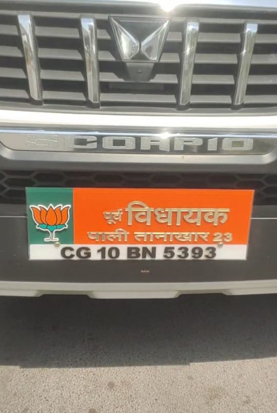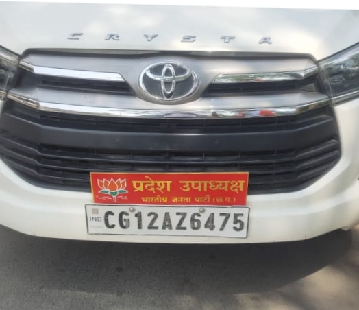 युवा मोर्चा प्रदेश कार्य समिति सदस्य बद्री अग्रवाल की कार में सामने नंबर प्लेट की जगह सिर्फ पदनाम लिखा है