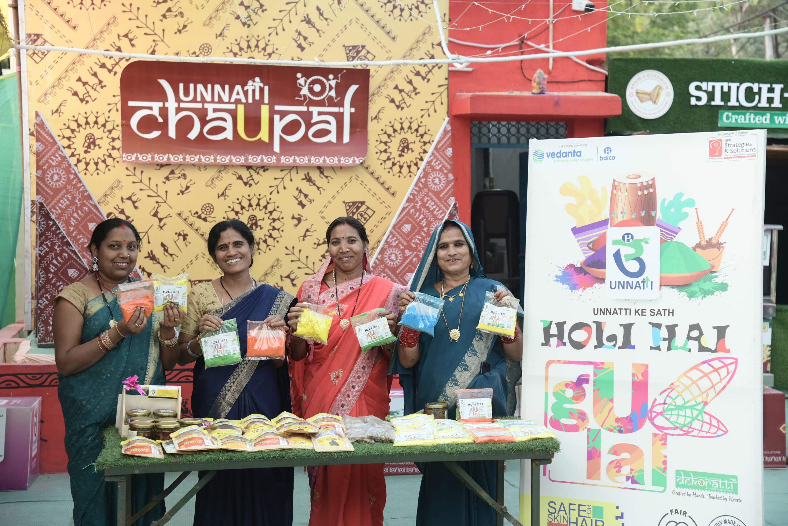 बालको के उन्नति परियोजना के अंतर्गत डेकोराती माइक्रो-एंटरप्राइज से जुड़ी तीन एसएचजी समूहों की महिलाएं द्वारा गुलाल बनाने का कार्य किया जा रहा है।