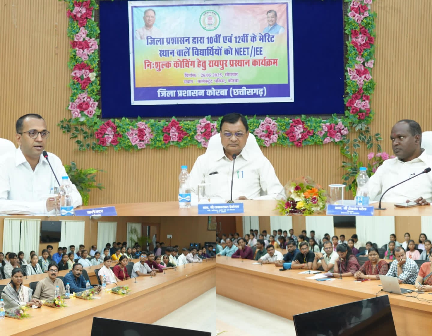 गौरतलब है कि जिला प्रशासन द्वारा जिला खनिज संस्थान मद से कोरबा जिले के शासकीय विद्यालय से शैक्षणिक सत्र 2024-25 में कक्षा 10वीं से मेरिट सूची में स्थान प्राप्त करने वाले 100 छात्र-छात्राओं तथा बारहवी उत्तीर्ण 50 विद्यार्थियों को नीट व जेईई प्रवेश परीक्षा की गुणवत्तापूर्ण तैयारी हेतु रायपुर के प्रतिष्ठित कोचिंग संस्था ऐलेन में प्रवेश दिलाया गया है।