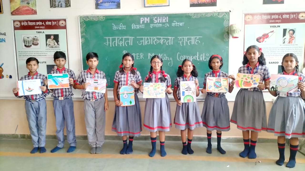 इसी कड़ी में आज प्राचार्य श्रीमती संध्या लकड़ा के मार्गदर्शन में केंद्रीय विद्यालय क्रमांक 04 गोपालपुर में सुव्यवस्थित मतदाता एवं निर्वाचन सहभागिता कार्यक्रम (स्वीप) के अंतर्गत छात्र-छात्राओं के लिए निबंध लेखन, प्रश्नोत्तरी प्रतियोगिता आयोजित की गई।
