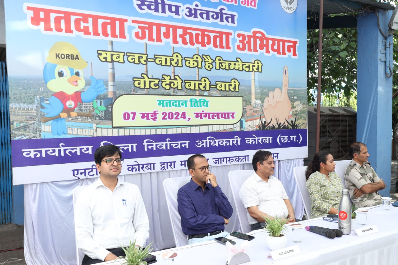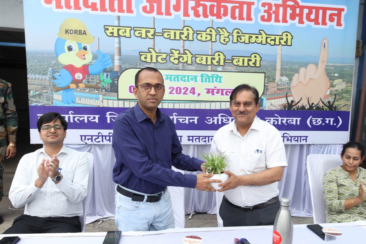 एनटीपीसी कोरबा में आयोजित कार्यक्रम में प्रतिभागियों, जो नागरिक और मतदाता हैं, को चुनावी प्रक्रिया के बारे में शिक्षित करने पर ध्यान केंद्रित किया गया ताकि चुनावी प्रक्रियाओं में उनकी जागरूकता और भागीदारी बढ़ाई जा सके। आयुक्त नगर निगम, सुश्री प्रतिष्ठा मामगाई ने भी सभी उपस्थितजनों से मतदान हेतु अपील किया ।