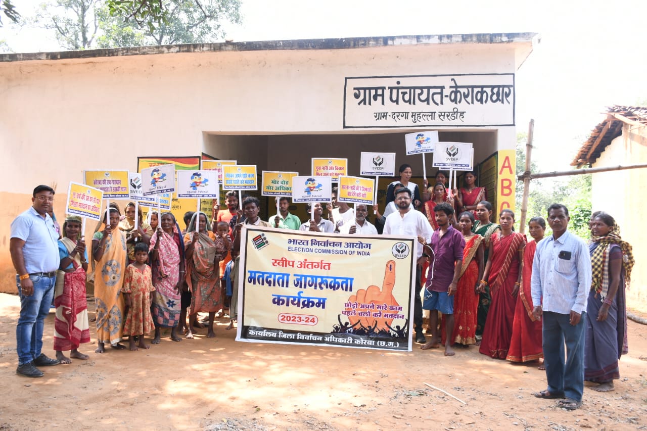 कोरबा जिला निर्वाचन अधिकारी श्री सौरभ कुमार व स्वीप नोडल अधिकारी श्री विश्वदीप के निर्देशन में मतदाता जागरूकता टीम ग्राम केराकछार सहित आश्रित ग्राम दरगा, सरडीह मदनपुर में मतदाता जागरूकता कार्यक्रम का आयोजन किया गया। इन गांवों में मतदाताओं ने कुछ दिन पहले मतदान बहिष्कार करने की बात कही गई थी, जिसे लेकर मतदाता जागरूकता टीम प्रभारी अनिल रात्रे ने अपने टीम के साथ सभी मतदाताओं से रूबरू होते हुए शत प्रतिशत मतदान का संकल्प दिलाया।