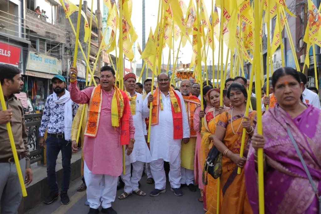 : श्री राम के उद्घोष से गूंज उठा कोरबा नवनिर्मित राम दरबार की भव्य निशान यात्रा का