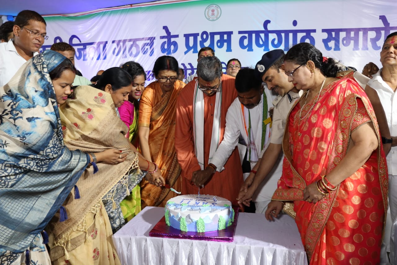 : विधानसभा अध्यक्ष डॉ चरण दास महंत ने केक काटकर मनाया सक्ती जिले का प्रथम वर्षगांठ