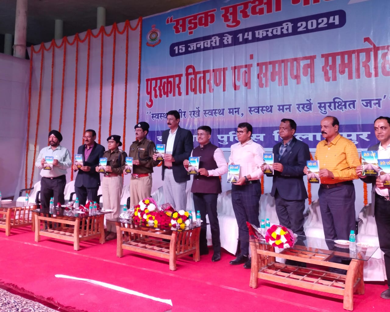 बिलासपुर( न्यूज उड़ान) सड़क सुरक्षा माह 2024 का समापन एवं पुरूस्कार वितरण समारोह, एवं रंगारंग कार्यक्रम द्वारा सम्पन्न हुआ जिसके मुख्य अतिथि डॉ० संजीव शुक्ला जी, पुलिस महानिरीक्षक बिलासपुर रेंज बिलासपुर एवं विशिष्ट अतिथि श्री अवनीश कुमार शरण जिलाधीश एवं जिला दंण्डाधिकारी बिलासपुर तथा आयुक्त नगर पालिक निगम श्री अमित कुमार थे। कार्यक्रम के समापन अवसर पर रंगा रंगा सांस्कृति कार्यक्रमों की प्रस्तुति स्कूल, कॉलेज के छात्र छात्राऐं एवं सामाजिक संस्थाओं के सदस्यों द्वारा दी गई। साथ ही किरण मोईत्रा जी की कठपुतली टीम द्वारा यातायात जागरूकता पर अपनी मनमोहक प्रस्तुति दी गई। सभी सम्मानिय अतिथियों एवं जिले के पुलिस अधीक्षक श्री रजनेश सिंह द्वारा कार्यक्रम के प्रारंम्भ में अपने विचार इस कार्यक्रम के आयोजन एवं इसकी उपयोगिता पर प्रस्तुत किया गया। साथ ही सड़क सुरक्षा माह दौरान आयोजित कार्यक्रमों के संबंध में प्रतिवेदन की प्रस्तुति एवं कार्यों की जानकारी उप पुलिस अधीक्षक श्री संजय साहू द्वारा दी गई। विदित हो कि सड़क सुरक्षा माह का आयोजन दिनांक 15 जनवरी से 14 फरवरी 2024 तक बिलासपुर पुलिस के द्वारा पुलिस मुख्यालय नया रायपुर के दिशा निर्देश के अनुपालन में किया गया। माह के दौरान विभिन्न जन जागरूकता कार्यक्रम हेलमेट एवं पैदल रैली, लर्निंग लायसेंस वाहन बीमा कैम्प, वाहनों में धुओं उत्सर्जन जॉच, आटो, बस एवं ट्रक चालकों का स्वास्थ्य परीक्षण शिविर जिसमें 15 सौ से अधिक लोगों का नेत्र एवं स्वास्थ्य परीक्षण किया गया तथा उन्हें स्वास्थ्य की देख भाल की सलाह दी गई। इसी प्रकार कैम्प में माह के दौरान साढ़े सात हजार से अधिक लर्निंग लाइसेंस बनाये गये जो कि राज्य स्तर पर एक कीर्तिमान है। इसी प्रकार 17 सौ लोगों ने अपनी वाहन का बीमा कराया जिले के टोल प्लाजा में यातायात जागरूकता का कार्यक्रम आयोजन किया गया। स्कूल व कॉलेज के बच्चों के लिये यातायात विषयक सामान्य ज्ञान, वाद-विवाद, स्लोगन लिखों, पोस्टर पेटिंग, प्रतियोगिता का आयोजन किया गया। जिसमें श्रेष्ठ स्थान प्राप्त करने वाले सभी बच्चों को बिलासपुर पुलिस की ओर पुरूस्कृत किया गया। इस अवसर पर उप निरीक्षक उमाशंकर पाण्डेय द्वारा प्रस्तुत दैनिक रेडियों कार्यक्रम दैनिक अपडेट्स ऑफ बिलासपुर के संदेशों का संकलन कर व्याख्याता श्रीमती आरती कश्यप एवं श्रीमती वर्षा त्रिपाठी के द्वारा पुस्तक मेरी राहें का स्वरूप प्रदान किया गया। इस अवसर पुस्तक मेरी राहें का विमोचन मुख्या अतिथि महोदय द्वारा किया गया। सड़क सुरक्षा माह के आयोजन को सफल बनाने में अपनी भूमिका निभाने वाले सड़क सुरक्षा माह आयोजन समिति सदस्य एनजीओ के सदस्य सहित स्कूल कॉलेज के बच्चों को प्रशंसा 