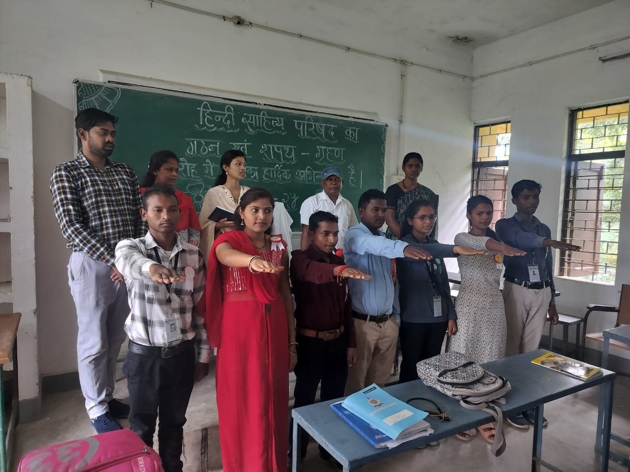 अध्यक्ष वीरेंद्र कुमार ,उपाध्यक्ष कु. शारदा यादव सचिव खेमराज चौहान ,कोषाध्यक्ष श्रीमती वर्षा डनसेना , सहायक कोषाध्यक्ष मनोज कुमार ,सहायक सचिव लालजीत सिंह एवं सांस्कृतिक प्रभारी पूजा यादव आदि उपस्थित रहे इसी के साथ ही हिंदी विभाग की उपाध्यक्ष पद पर आसीन शारदा यादव के द्वारा सभी अधिकारियों एवं उपस्थित छात्र-छात्राओं तथा अध्यापकों का आभार व्यक्त किया गया।Tags :