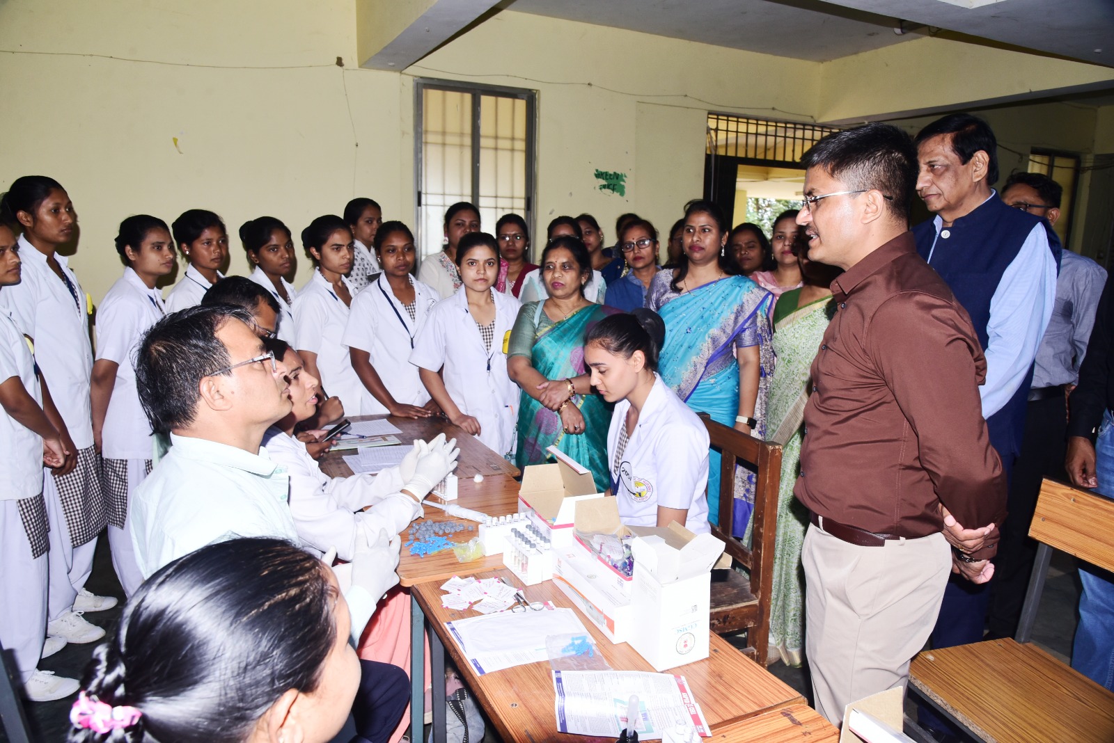 बिलासपुर( न्यूज उड़ान)  कलेक्टर श्री अवनीश शरण ने सिकल सेल एनीमिया जांच शिविरों का अवलोकन किया। प्रधानमंत्री सिकल सेल एनीमिया उन्मूलन अभियान के अंतर्गत जिले में ये विशेष शिविर आयोजित किये जा रहे हैं। कलेक्टर ने आज शहर के सेन्ट्रल जेल, देवरी खुर्द, पेण्ड्री (मस्तुरी) और लगरा का दौरा कर सिकल सेल जांच शिविरों का जायजा लिया।   सीएमएचओ डाॅ. अनिल श्रीवास्तव भी साथ थे। उन्होंने स्कूल, काॅलेजों में जांच शिविर संपन्न होने के बाद घर-घर दस्तक देकर सिकल सेल की जांच करने के निर्देश दिए।   उल्लेखनीय है कि योजना के अंतर्गत शून्य से 40 वर्ष तक के लोगों की निःशुल्क सिकल सेल जांच की जा रही है। वर्ष 2023-24 में 4 लाख 19 हजार लक्ष्य के विरूद्ध अब तक 2 लाख 20 हजार जांच किये जा चुके हैं। इनमें लगभग 1400 सिकल सेल केरियर एवं 135 बीमार लोगों की पहचान हुई है। इनका इलाज शुरू कर दिया गया है। कलेक्टर ने सबसे पहले केन्द्रीय जेल में आयोजित जांच शिविर का अवलोकन किया। उन्होंने 40 वर्ष उम्र तक के सभी कैदियों की सिकल सेल जांच कराने के निर्देश दिए। महिला कैदियों के लिए अलग से शिविर लगाने को भी कहा है। कैदियों से चर्चा कर जेल में मिल रहे भोजन और स्वास्थ्य की भी जानकारी ली। जेल परिसर से उस भवन को भी देखा जो कि जेल सुरक्षा को ताक पर रखते हुए अवैध रूप से निर्मित किया गया है।   उन्होंने इसके बाद वे देवरी खुर्द स्थित आदर्श कन्या आश्रम पहुंचे। उन्होंने सिकल सेल के जांच रिपोर्ट की स्वयं पोर्टल में एण्ट्री कर प्रक्रिया की जानकारी ली। बच्चों का मुंह मीठा कराते हुए मन लगाकर पढ़ने को कहा। उनसे भावी कैरियर के बारे में जानकारी ली। कलेक्टर ने पेण्ड्री ब्लाॅक मस्तुरी सांदीपनि नर्सिंग काॅलेज में चल रहे शिविर का भी जायजा लिया। नर्सिंग छात्राओं से चर्चा कर उनकी फीस एवं काॅलेज में मिल रही अन्य सुविधाओं की जानकारी ली।   नर्सिंग छात्राओं के लिए दी बस वाहन एवं स्मार्ट क्लास की स्वीकृति - कलेक्टर श्री अवनीश शरण ने जांच शिविरों की निरीक्षण के क्रम में लगरा का दौरा किया। शासकीय नर्सिंग काॅलेज में लग रहे शिविर का जायजा लिया। उन्होंने नर्सिंग छात्राओं से चर्चा की। उनकी दिक्कतों और समस्याओं को सुना। छात्राओं के आग्रह पर कलेक्टर ने डीएमएफ मद से एक बड़े बस खरीदने की सशर्त स्वीकृति प्रदान की।   गौरतलब है कि नर्सिंग छात्राएं प्रशिक्षण के लिए सिम्स बिलासपुर आती हैं। उन्हें आने-जाने में काफी असुविधा होती हैं। इसे महसूस करते हुए कलेक्टर ने बस खरीदने की स्वीकृति प्रदान करते हुए जल्द प्रस्ताव भेजने के निर्देश दिए।   नर्सिग छात्राओं के लिए स्मार्ट क्लास की भी स्वीकृति प्रदान की। इस अवसर पर डाॅ. सौरभ शर्मा, डीपीएम पीयुली मजूमदार भी उपस्थित थीं।