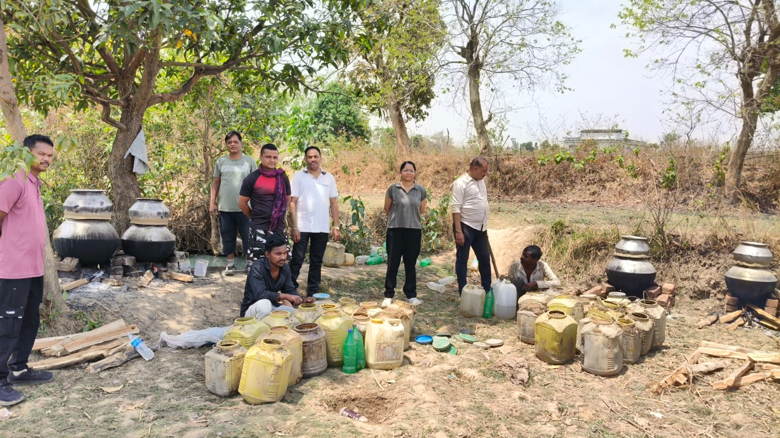 दबिश के दौरान आरोपीगण अवैध रूप से कच्ची महुआ शराब का निर्माण एवं भंडारण करते पाए गए।