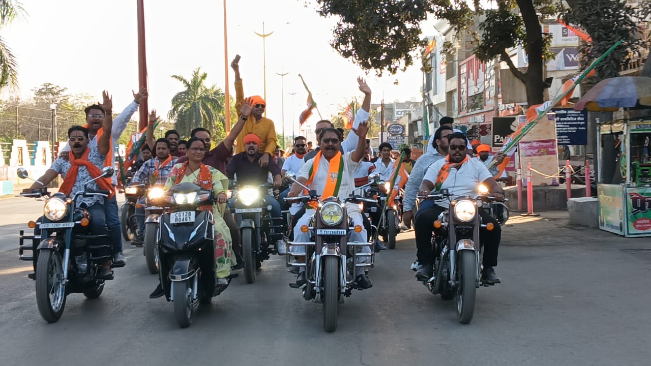 कोरबा (न्यूज उड़ान )भारतीय जनता युवा मोर्चा (भाजयुमो) कोरबा ने नगर निगम चुनावों में भाजपा की महापौर प्रत्याशी श्रीमती संजू देवी राजपूत और 67 वार्डों के पार्षद प्रत्याशियों के समर्थन में एक विशाल बाइक रैली का आयोजन किया।