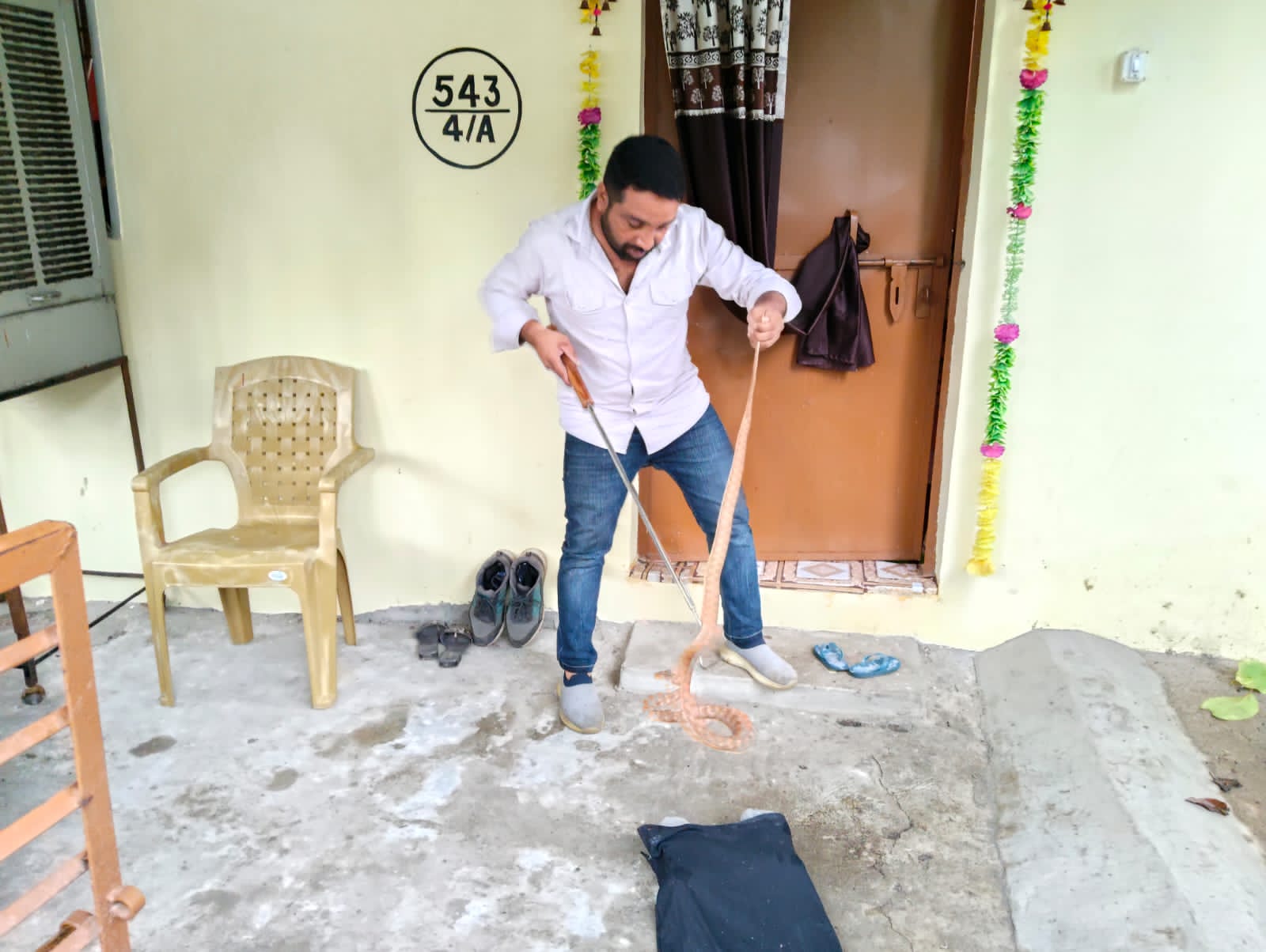 तब जाकर घर वालों ने राहत भरी सांस लिया साथ ही जितेंद्र सारथी ने बताया यह सांप इंसानों के लिए खतरा नहीं हैं क्यों कि ये हल्का जहरीला (mild venomous) हैं फिर उसे सुरक्षित उसके प्राकृतिक वातावरण में छोड़ दिया गया।