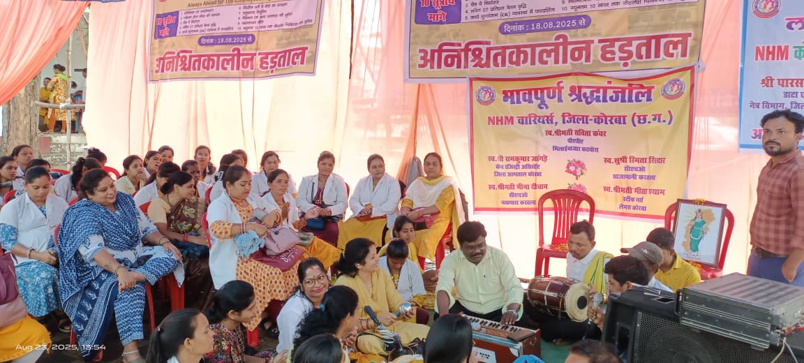 कोरबा( न्यूज उड़ान ) आज लगातार 6th दिन 23 अगस्त को धरना स्थल हड़ताल में पीला वस्त्र पहनकर कोरोना काल में दिवंगत को श्रद्धांजलि, तथा
