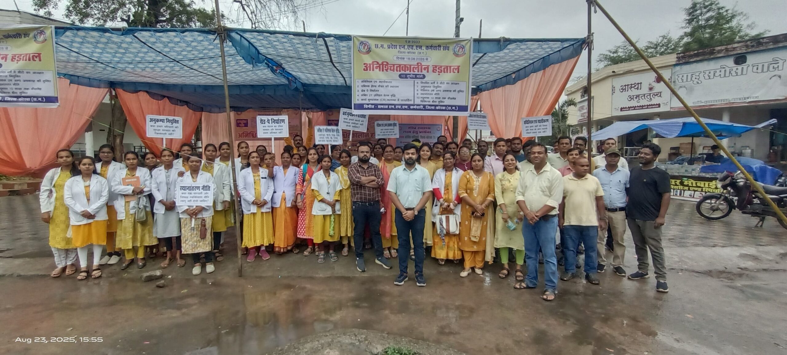 : एनएचएम संविदा कर्मचारियों ने भीषण बारिश में धरना स्थल पर डट कर नारे एवं उद्बोधन स्वरूप अपने अभिव्यक्ति दी |