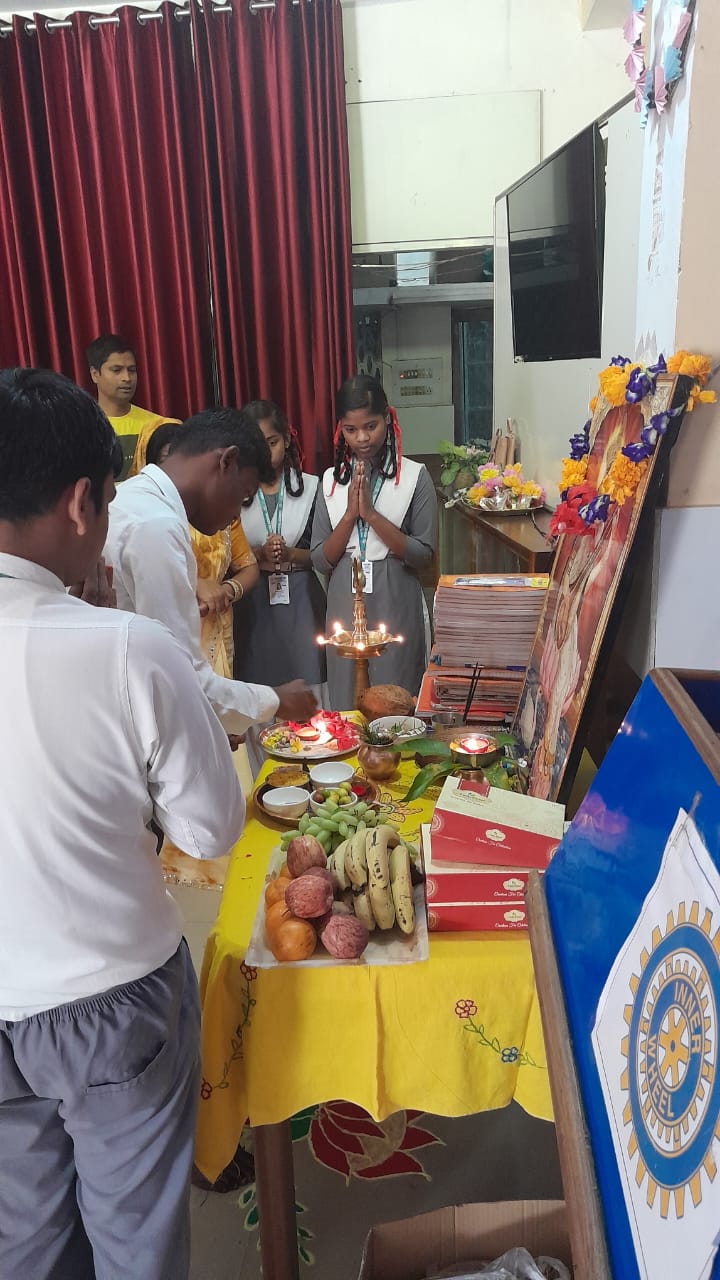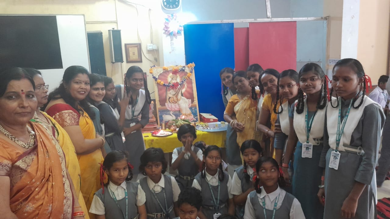 विद्यालय के सभी विद्यार्थी और शिक्षक एक साथ सरस्वती वंदना कर भजन और कविता का पाठ किया। विद्यालय में फल, बूंदी, नारियल और खिचड़ी का प्रसाद वितरण किया गया।