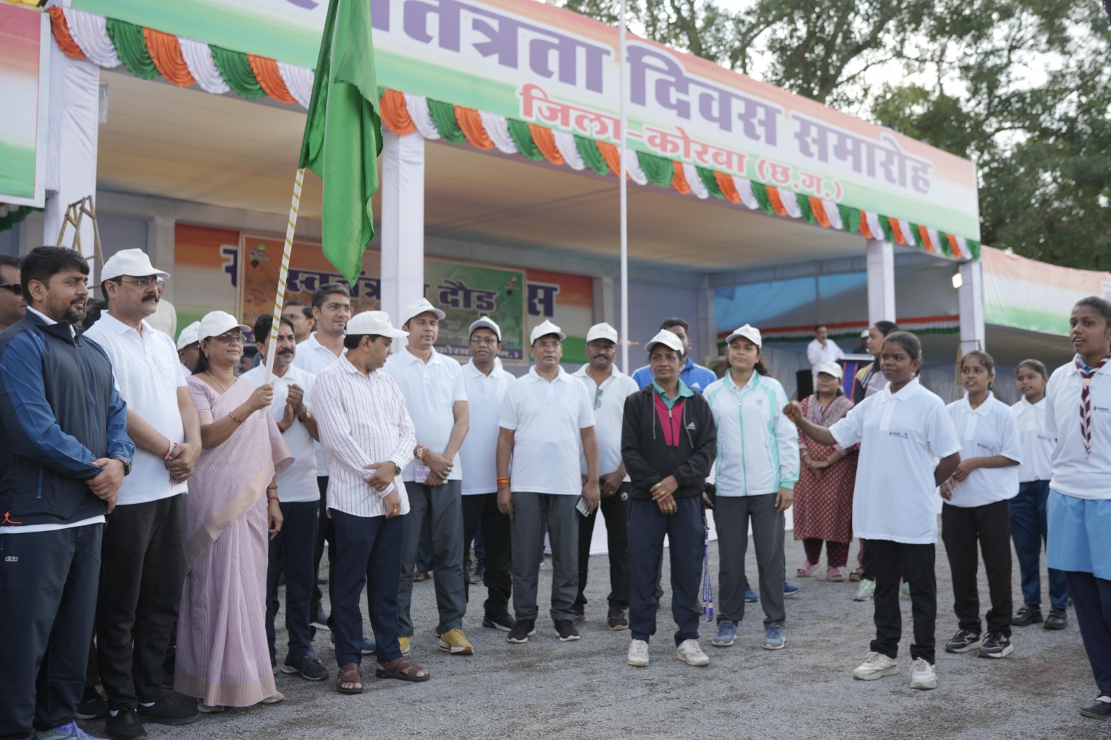 कोरबा नगर निगम महापौर श्रीमती संजू देवी राजपूत ने स्वतंत्रता दौड़ को हरी झंडी दिखाकर रवाना किया।