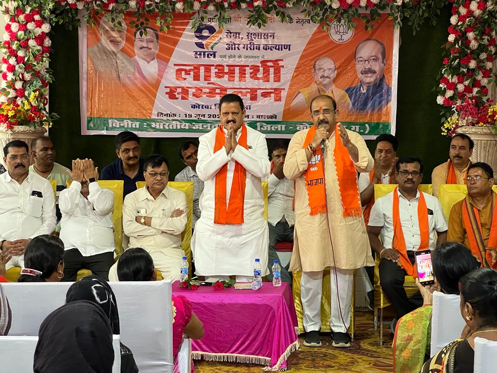 बालकों, कोरबा :केन्द्र में मोदी सरकार के 9 वर्ष पूरा होने पर भाजपा इस कार्यकाल को सेवा, सुशासन एवं गरीब कल्याण को केंद्रित रख अनेक कार्यक्रम आयोजित कर रही है इसी तारतम्य में जिला भाजपा के निर्देशानुसार कोरबा विधानसभा स्तरीय लाभार्थी सम्मेलन बाल्को के उत्सव वाटिका में भव्य रूप से मनाया गया । इस कार्यक्रम मे जिले, विधानसभा सहित समस्त मंडलों के सभी वरिष्ठ नेता उपस्थित रहे।