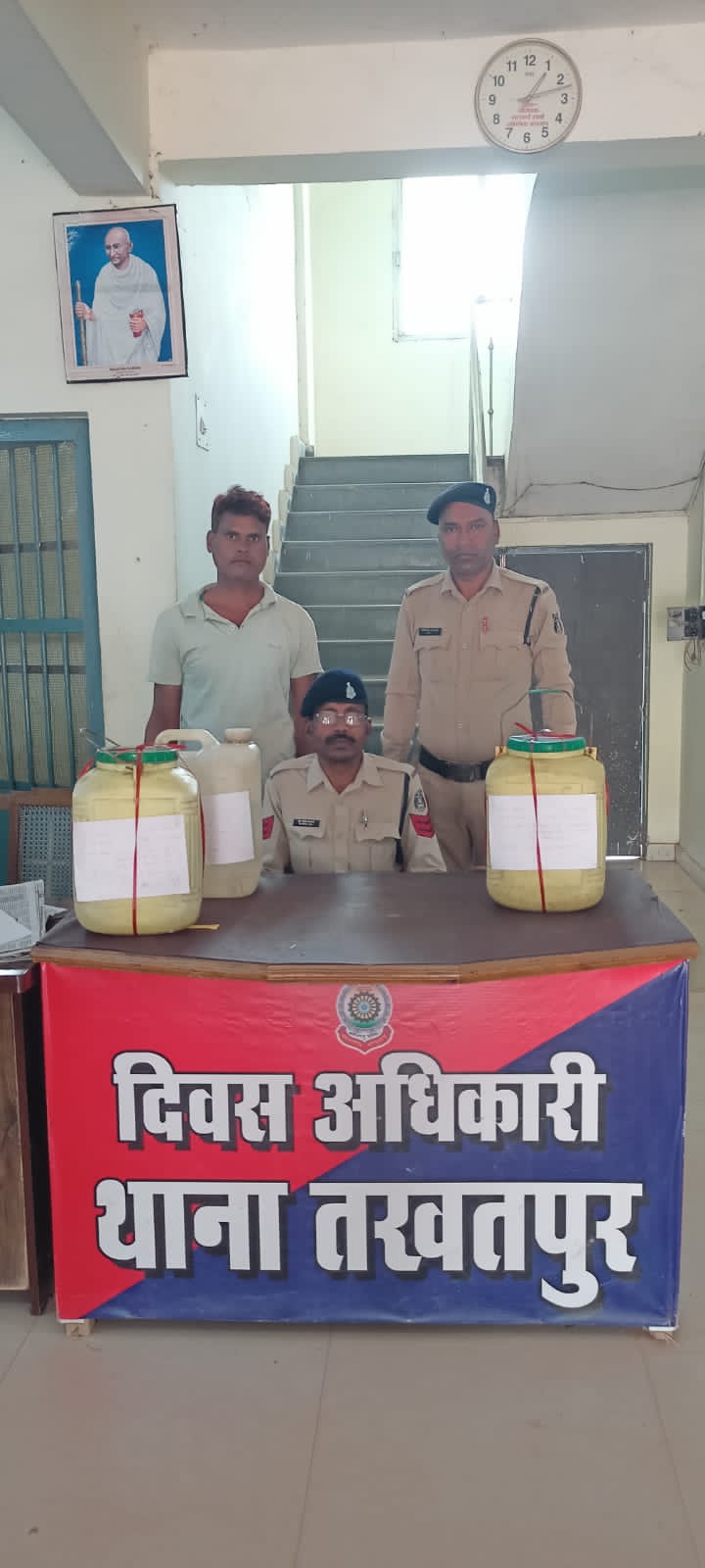 : अवैध रूप से महुआ शराब के साथ आरोपी गिरफ्तार जप्त सामान - 35 लीटर महुआ शराब
