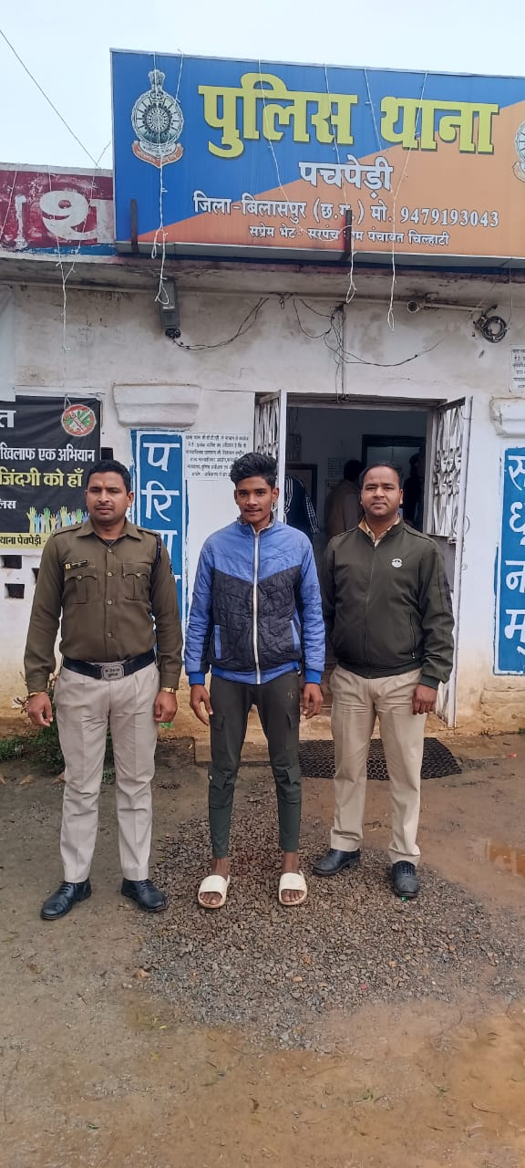 बिलासपुर (न्यूज उड़ान ) घटना का विवरण :- मामले का संक्षिप्त विवरण इस प्रकार है कि प्रार्थियां ने रिपोर्ट कराया कि दिनांक 10.11.2023 के अपने घर के मोहल्ले खुद बोर में पानी भरने गई थी पानी भरकर वापस घर लौट रही थी तभी गांव के चंद्रकांत साहु रोक कर हाथ पकड़ कर इज्जत लेने के नियत से छेड़खानी करने लगा प्रार्थीया के रिपोर्ट पर थाना पचपेडी मे अपराध धारा 354,506 भादवि का अपराध. पंजीबध्द कर विवेचना कार्यवाही के दौरान मुखबिर की सूचना के आधार परआरोपी चन्द्रकांत साहू को मोपका बिलासपुर से दबिश देकर पकड़ा गया।