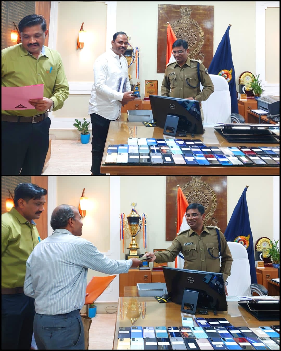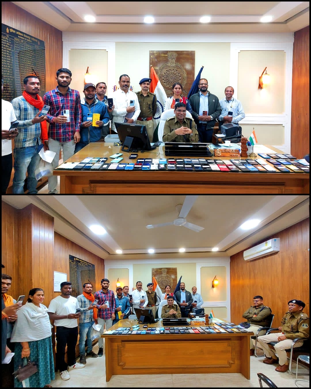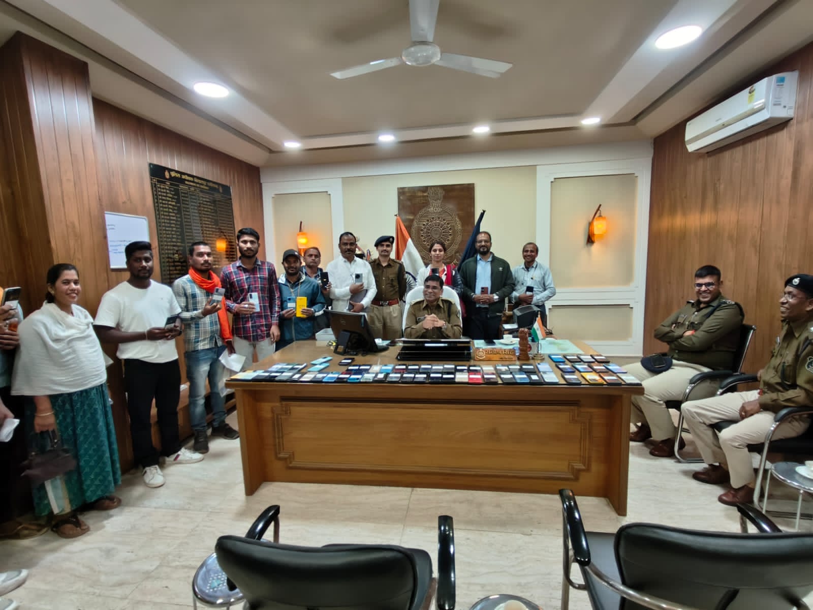 निर्देश के पालन में अतिरिक्त पुलिस अधीक्षक (शहर) श्री राजेन्द्र कुमार जायसवाल, अतिरिक्त पुलिस अधीक्षक (ग्रामीण) श्रीमती अर्चना झा, नगर पुलिस अधीक्षक सिविल लाईन श्री संदीप पटेल (भा.पु.से.) नगर पुलिस अधीक्षक कोतवाली सुश्री पूजा कुमार (भा.पु.से.) के निर्देशन में ए.सी.सी.यू. बिलासपुर के अधिकारी कर्मचारीयो द्वारा खोज अभियान चलाकर छत्तीसगढ के विभिन्न जिलो सहित झारखण्ड, उडीसा एवं महराष्ट्र से कुल 80 नग मोबाईल बरामद किया गया जिसें आज दिनाॅक 12.12.23 को पुलिस अधीक्षक श्री संतोष सिह, अतिरिक्त पुलिस अधीक्षक राजेन्द्र जायसवाल एवं नगर पुलिस अधीक्षक सिविल लाईन श्री संदीप पटेल द्वारा मोबाईल धारको को वापस प्रदान किया गया है। वापस किये गये मोबाईल की कीमत लगभग 15 लाख रू है।