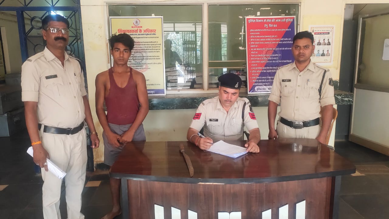 बिलासपुर( न्यूज उड़ान) विवरण - लोकसभा निर्वाचन 2023 के मद्देनजर नजर श्रीमान पुलिस अधीक्षक महोदय बिलासपुर श्री रजनेश सिंह के द्वारा असामाजिक तत्वों और समाज में शांति भंग करने वाले लोगों के विरुद्ध त्वरित कार्यवाही किए जाने निर्देशित किया गया है।   इसी परिप्रेक्ष्य में दिनांक 30.03.2024 के शाम को थाना प्रभारी कोटा को सूचना मिली की ग्राम रानीसागर रोड में एक अज्ञात व्यक्ति तलवार लहराकर लोगों को डरा धमका रहा है।   सूचना पर तत्काल पुलिस टीम भेज कर ग्राम रानीसागर रोड में सार्वजनिक स्थान पर तलवार लहराते आरोपी अश्वनी कुमार बंजारे के कब्जे से धारदार तलवार जप्त कर थाना लाकर विधिवत‌् गिरफ्तार कर न्यायिक रिमांड पर भेजी जाती है। उक्त कार्यवाही में थाना प्रभारी रजनीश सिंह प्रधान आरक्षक रविंद्र मिश्रा और आरक्षक रवि राजपूत ,विश्वजीत खूँटे एवं सुनील पटेल सक्रिय रहे ।   लोकसभा चुनाव के मद्देनजर समाज में असमाजिक तत्व एवं शांति भंग करने वालों के विरुद्ध कार्यवाही कर अपराध पर रोक लगाना है।