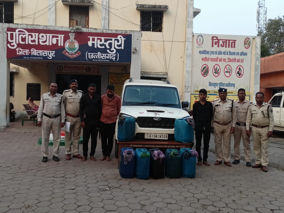 बिलासपुर( न्यूज उड़ान) संक्षिप्त विवरण:- इस प्रकार है कि थाना मस्तुरी क्षेत्रान्तर्गत आये दिन हो रहे डीजल चोरी एवं लूटपाट की घटना की रोकथाम किये जाने हेतु श्रीमान पुलिस अधीक्षक महोदय बिलासपुर श्री संतोष कुमार सिंह के द्वारा जिले में बढ़ते हुए डीजल चोरी एवं लूट की घटना/वारदात पर अंकुश लगाये जाने हेतु कार्यवाही करने निर्देशित किया गया था जिसके परिपालन में श्रीमान अतिरिक्त पुलिस अधीक्षक महोदय ग्रामीणद्ध श्रीमती अर्चना झा, उप पुलिस अधीक्षक( हेड क्वाटर) श्री उदयन बेहार के मार्गदर्शन पर एंटी क्राइम कंट्रोल यूनिट एवं साईबर सेल की सहायता से थाना प्रभारी रविन्द्र अनंत थाना मस्तूरी के नेतृत्व में टीम गठित कर डीजल की चोरी करने की नीयत से लूटपाट करने वाले तीन आरोपियों सहित घटना में प्रयुक्त एक सफेद रंग के स्कार्पियों कमांक CG10BJ 4584 एवं सात नग जरिकेन डब्बा में भरा हुआ कुल 230 लीटर डीजल को आरोपियों के कब्जे से जप्त किया गया है।