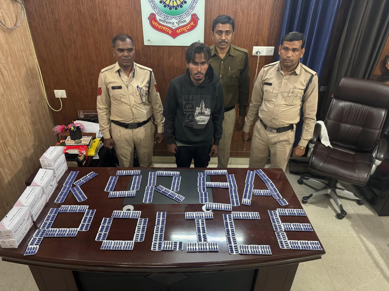 कोरबा पुलिस के द्वारा आरोपी हितेश चैहान के कब्जे से 3200 नशीली टेबलेट जप्त किया गया एवं नशीले पदार्थ सप्लाई करने वाले के बारे में पुलिस को जानकारी मिली है जिसके ठिकानों पर लगातार दबिश दी जा रही है।
