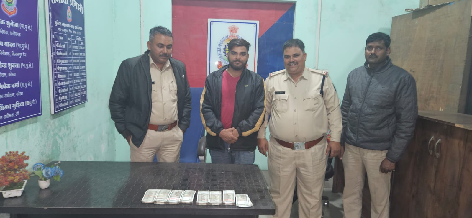 कोरबा श्रीमान पुलिस अधीक्षक महोदय कोरबा श्री जितेंद्र शुक्ला द्वारा आगामी विधानसभा चुनाव 2023 के मद्देनजर अवैध गतिविधियों पर रोकने हेतु दिशा निर्देश दिये गये थे जिस पर अतिरिक्त पुलिस अधीक्षक महोदय श्री अभिषेक वर्मा एवं नगर पुलिस अधीक्षक महोदय श्री रॉबिंसन गुड़िया के मार्गदर्शन में थाना प्रभारी कुसमुण्डा कृष्ण कुमार वर्मा एवं सर्वमंगला चौकी प्रभारी विभव तिवारी के नेतृत्व में दिनांक 15.11.2023 को पुलिस सहायता केंद्र सर्वमंगला के टीम के द्वारा पैदल पेट्रोलिंग निकला था बरहमपुर चौक पर सौरभ शर्मा पिता परशुराग शर्मा उग्र 28 वर्ष साकिन कुसमुण्डा पैदल जा रहा था उसके थैला को चेक करने पर 3,60000 रूपये जिसका कोई वैध दस्तावेज नहीं होने से संदिग्ध होने से समक्ष गवाहन 360000 को जप्तकर धारा 102 जाफौ की कार्यवाही की गई।