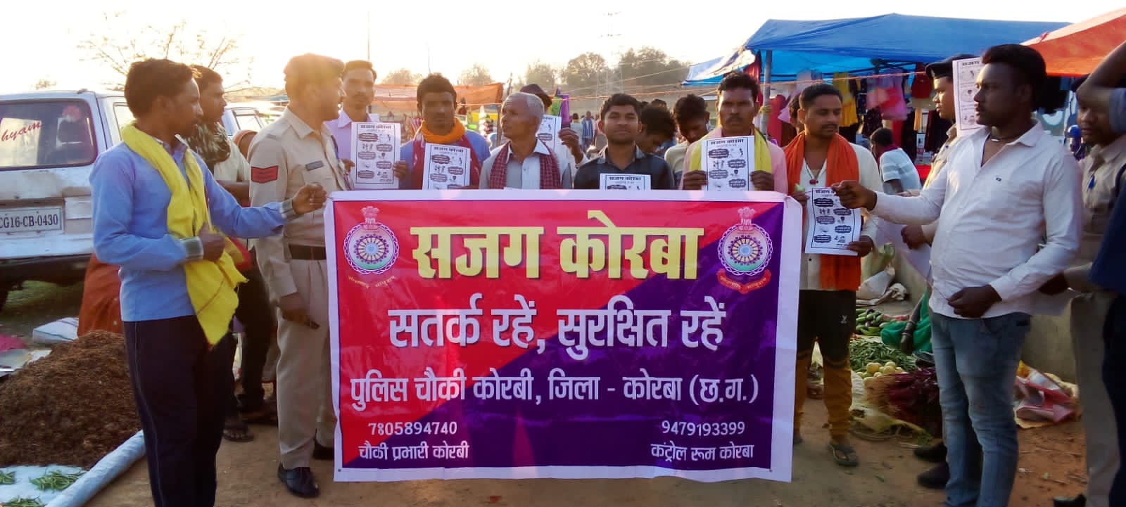 कोरबी पुलिस के द्वारा साप्ताहिक बाज़ार में पैम्फलेट देकर बैंक में होने वाले अपराध के बारे में जागरूक किया गया।