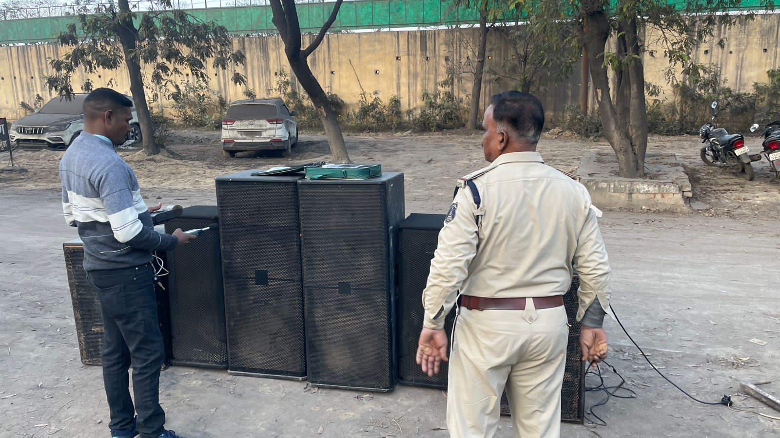 कोरबा (न्यूज उड़ान) श्रीमान पुलिस अधीक्षक महोदय कोरबा श्री जितेन्द्र शुक्ला द्वारा क्षेत्र में अवैध डी.जे. साउण्ड सिस्टम के संचालकों के विरुद्ध सख्त कार्यवाही के संबंध में दिये गये निर्देशों के परिपालन में श्रीमान अतिरिक्त पुलिस अधीक्षक श्री अभिषेक वर्मा व श्रीमान नगर पुलिस अधीक्षक श्री राबिन्सन गुरिया के मार्गदर्शन पर आज दिनांक 27.01.2024 को पेट्रोलिंग के दौरान गेवरा बस्ती भस्माखार मनगांव तरफ रवाना हुआ था कि भरगखार मनगांव में राम खिलावन पटेल नामक व्यक्ति अपने घर के बाहर 06 नग साउंड बॉक्स, मय डीजे साउंड सिस्टम (एम्पलीफायर) तथा एक पेन ड्राइव से तेज ध्वनि में बजाते मिला जिसे बिना अनुमति के निर्धारित ध्वनि सीमा से ध्वनियंत्रो से ध्वनि प्रदुषण करने पर मौके पर अनावेदक राम खिलावन पटेल पिता रामकृष्ण पटेल उम्र 35 साल निवासी भस्माखार मनगांव थाना कुसमुण्डा के कब्जे से कोलाहॉल अधिनियम की धारा 5,15 के तहत जप्त कर कब्जा पुलिस लिया गया है।