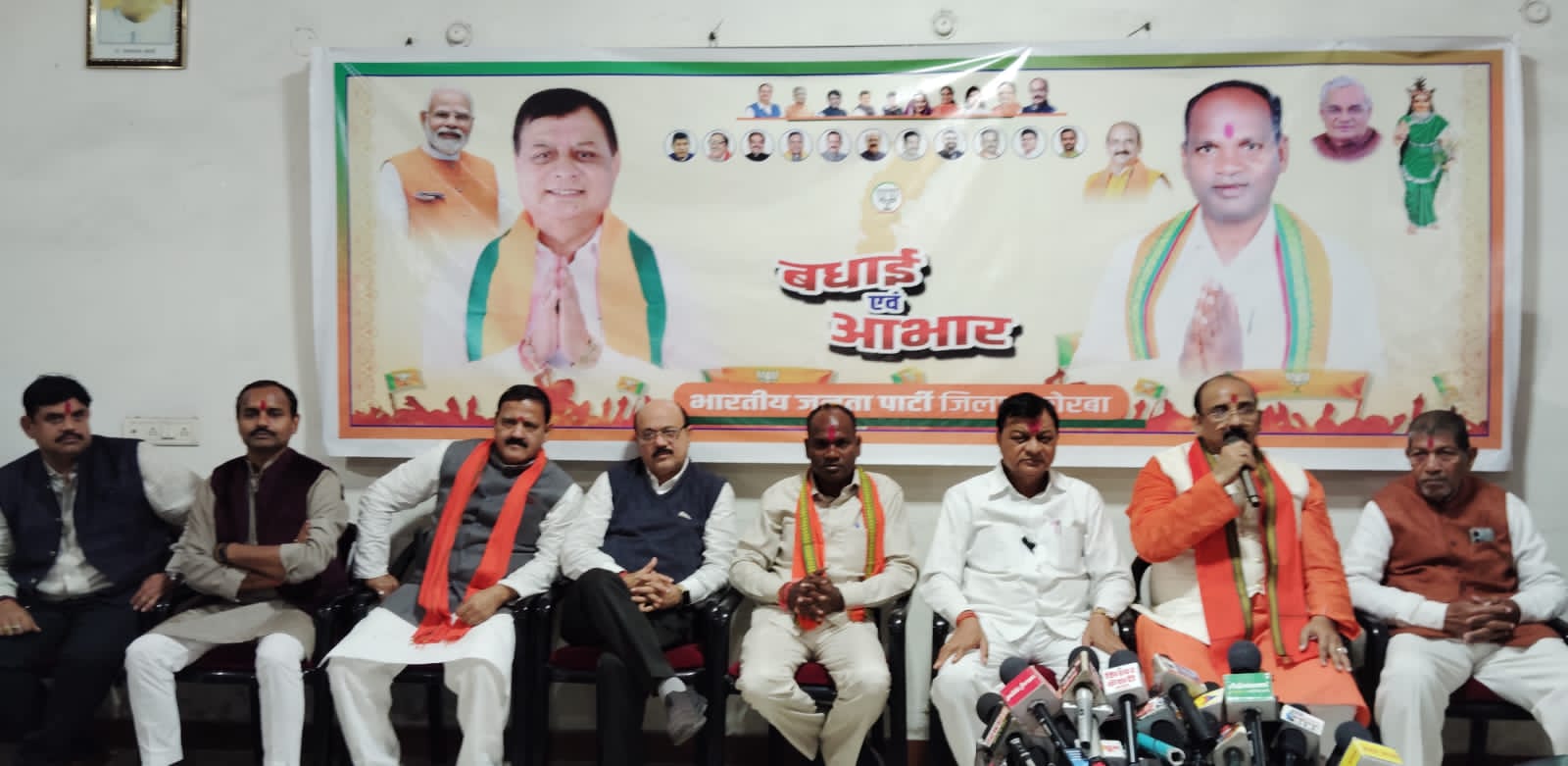 जिला भाजपा कार्यालय में आयोजित पत्रकारवार्ता में सर्वप्रथम जिलाध्यक्ष डॉ.राजीव सिंह ने कहा कि भाजपा के दो विधायक चुनाव में जीत दर्ज करने में सफल हुए हैं इसका श्रेय कार्यकर्ताओं सहित आम लोगों को है।
