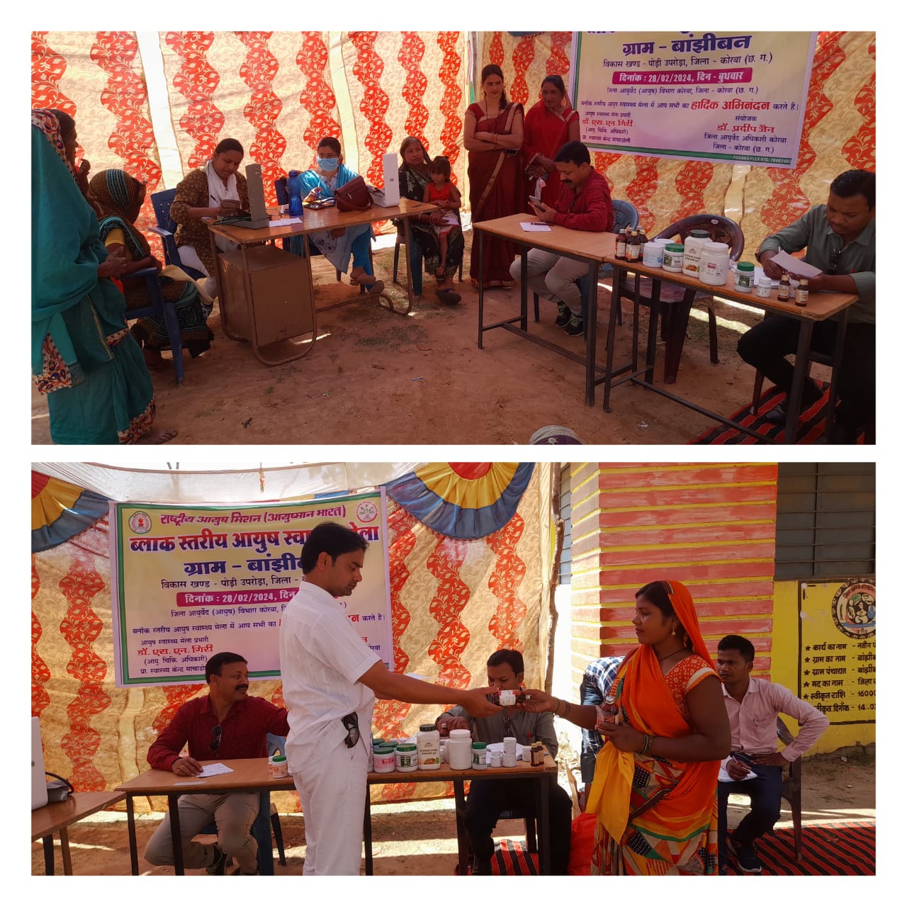 जिसमें 315 लोगों ने अपने स्वास्थ्य की जांच कराई जिसमें 185 महिलाएं और 130 पुरुषों ने स्वास्थ्य शिविर का लाभ उठाया। इसके संयोजक श्रीमान डॉ. प्रदीप जैन जिला आयुर्वेद अधिकारी कोरबा (छ.ग.) रहे इस दौरान आयुष स्वास्थ्य मेला प्रभारी डॉ. सदानंद गिरी रहे सहयोगी के तौर पर आयुर्वेद विशेषज्ञ चिकित्सक डॉ.नेहा मिंज, आयुर्वेद चिकित्सा अधिकारी डॉ. श्वेता एक्का, द्वारा विभिन्न गंभीर बीमारी जैसे मधुमेह, उच्च रक्तचाप, बवासीर, चर्म रोग, गैस, पुरानी खांसी, स्वाश, सिकल सेल, एनीमिया, अनिद्रा, उदर रोग, पथरी, स्त्री रोग, रक्त प्रदर, अनियमित माहवारी, मिर्गी, बाल का झरना, वात रोग, साइटिका आदि रोगों का जांच कर निशुल्क औषधि वितरण किया गया और डॉक्टरों द्वारा अच्छे स्वास्थ्य के लिए आम जनों को उचित सलाह दिया गया।