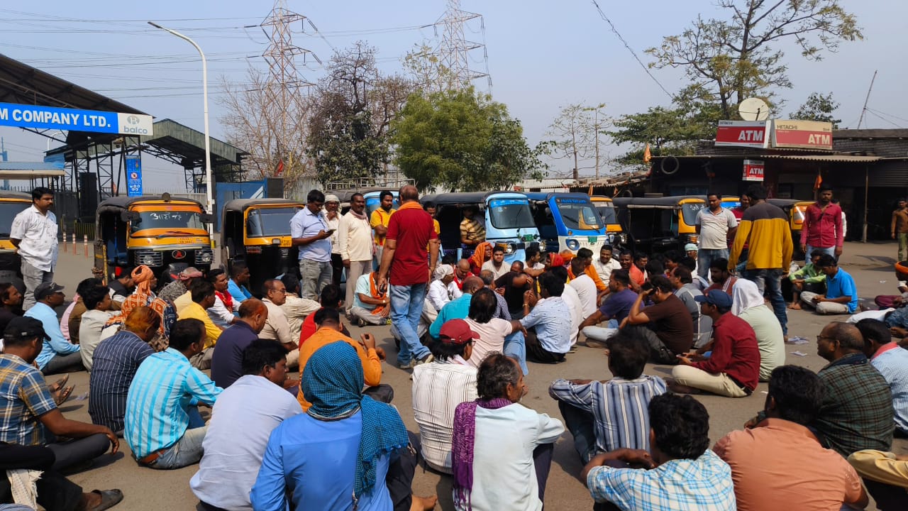 मृतक ऑटो चालक के परिवार को उचित मुआवजा दिलाने की मांग को लेकर, प्रदर्शनकारियों ने बालकोनगर में गेट के सामने चक्का जाम कर दिया है।