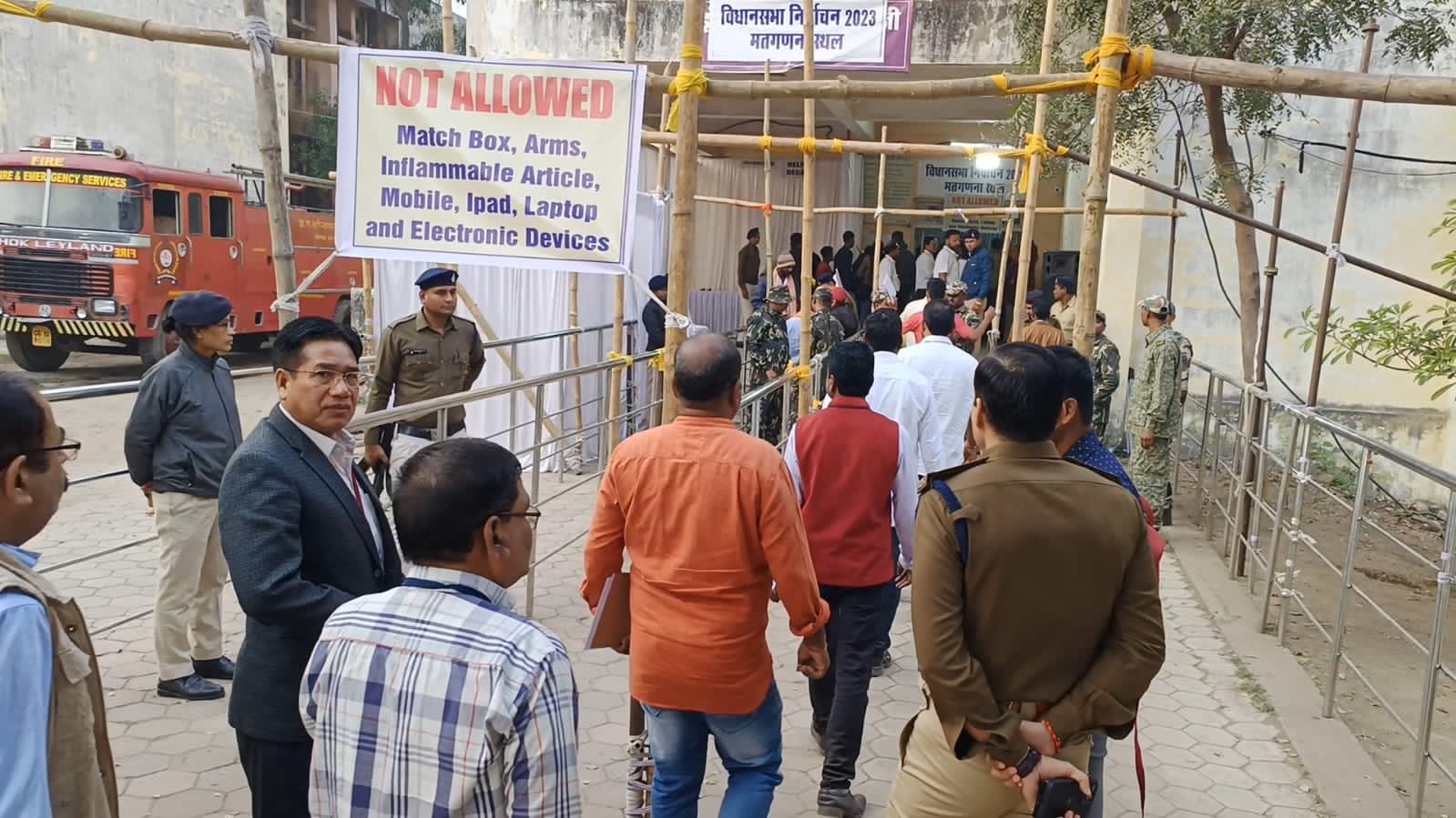 : मतगणना से पूर्व निर्वाचन कार्य मे संलग्न कर्मचारी प्रवेश करते हुए, कुछ देर में रुझान आना होंगे शुरू