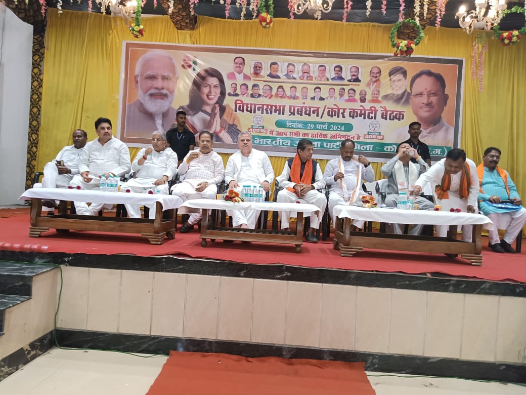 शुक्रवार को टी.पी.नगर स्थित आशीर्वाद भवन में भाजपा की विधानसभा प्रबंधन और कोर कमेटी की बैठक आयोजित की गई थी । बैठक में विशेष तौर पर क्षेत्रीय संगठन महामंत्री अजय जामवाल, प्रदेश महामंत्री संगठन पवन साय, कोरबा लोकसभा प्रत्याशी सुश्री सरोज पाण्डेय, वित्तमंत्री ओ.पी. चौधरी, उद्योग मंत्री लखनलाल देवांगन वरिष्ठ विधायकगण धरमलाल कौशिक, अमर अग्रवाल, प्रेमचंद पटेल , संभाग प्रभारी अनुराग सिंह देव, भाजपा जिला अध्यक्ष डा राजीव सिंह समेत अन्य पदाधिकारी उपस्थित रहे।