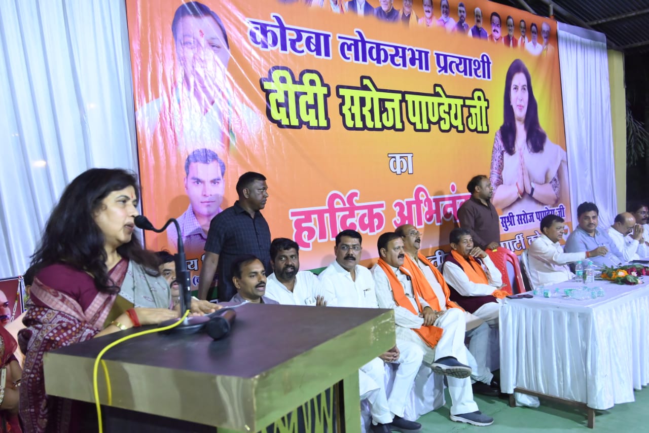 कोरबा( न्यूज उड़ान) रविवार की शाम भाजपा की राष्ट्रीय उपाध्यक्ष व लोकसभा प्रत्याशी डॉ सरोज पांडेय ने कोरबा विधानसभा अंतर्गत कोरबा शहर एवं कोसाबाड़ी मण्डल की बैठक ली।